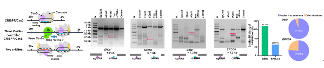 综上,本研究利用dCas9阻止Cas3解旋dsDNA的研究策略,实现CRISPR Type I-E系统介导的大片段基因组精准缺失,同时验证了该策略在细胞及动物模型构建中的有效性,有望用于非整倍体疾病及额外染色体的片段插入等人类临床疾病的致病机制研究及基因治疗。