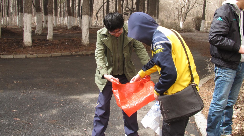 下午一点,同学们携带好自备的塑料袋和清理工具从公司步行来到绿园区林园。班长张炳旭很快就安排好同学们的各自清理区域,服务活动如火如荼的进行着。四月的长春依然是一副冬天的模样,凛冽的寒风夹杂着灰尘,将公园里还未苏醒的树木吹得左右摇摆,同学们也双手冻得通红。可恶劣的天气状况并没有影响大家志愿服务的热情,我们边捡垃圾边说笑,这还沉睡着的林园,瞬间仿佛苏醒了一般,四处飘散着同学们的青春活力。