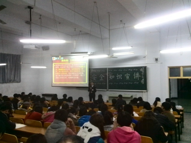 最后,他给大家分析了火灾发生的原因,尤其强调老员工应着重防范“明火易燃”和“电线起火”,并指出当前老员工乱点蚊香、蜡烛、乱丢烟头、使用不合格接线板、使用热得快等电器很容易引起火灾,呼吁同学们对自己和他人生命和财产负责,引以为戒。