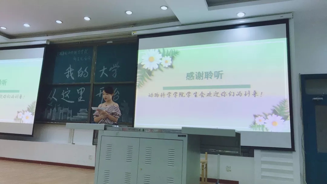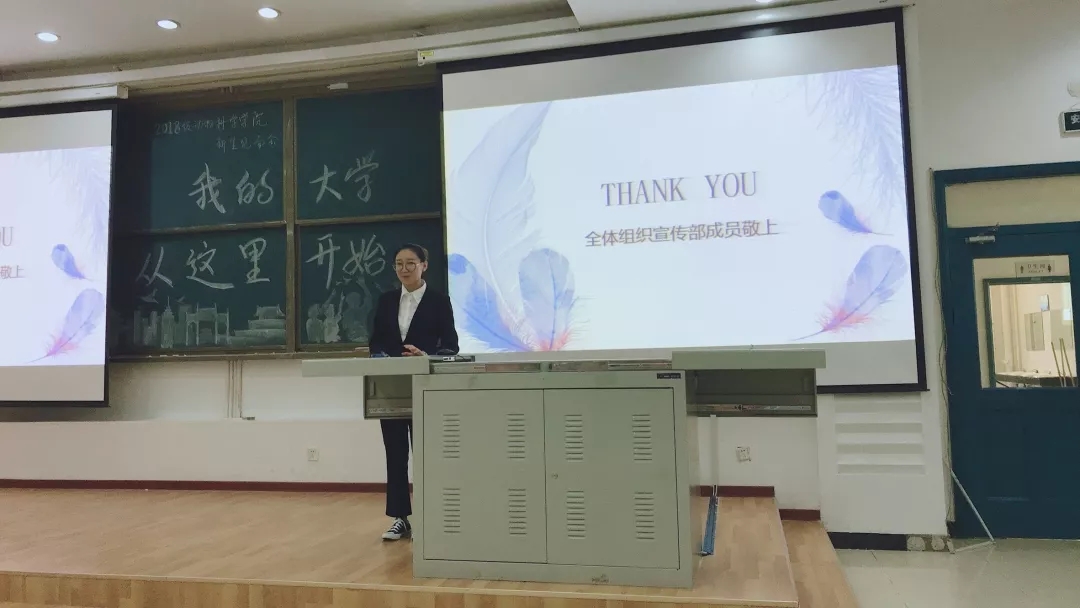 会议开始时,由主持人对员工会的职能及任务做出了一个简要而完整地概括。然后由主席及各部门部长对主席团及各部门做了具体而详细的介绍。每个人都配合着自己部门精心制作的PPT,用自己的风格给大一新生们做了精彩的讲解。亲切的主席李金泽,严肃的副秘书长吕焱,端庄的文艺民族部部长李璐,幽默的体育部部长白元滨,可爱的组织宣传部部长段雨含,温柔的生活学习心理部部长肖雯予以及实在的外联志工部部长余霆杰。不仅仅是上台发言的部长们,各部门的副部长们也为本次宣讲会做了许多准备工作。大一新生们也从这些风格不同的介绍中,对员工会有了自己的了解。而在接下来的提问环节中,大一新生们也积极地和学长学姐们互动,提出了许多自己想要了解的问题。最后主持人说了结束词,本次新生宣讲会在一片欢乐的气氛中圆满结束。