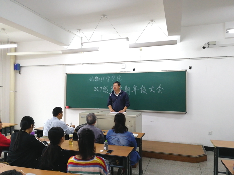 会议开始,首先由教学副经理孙博兴向全体人员介绍了关于大二上学期动科专业分流和“卓越农林培养”计划选拔的大体情况,还告诫员工们抓好自身学习和个人素养的培养,不要心存侥幸,踏实走好每一步。紧接着,教学办主任马骥超老师就孙经理提出的分流问题和“卓越农林”培养计划具体进行了进一步的阐释。详细为员工们宣读了2017级动物科学本科生专业分流要求,并解释了志愿如何填报和后续入选的问题。之后员工们深入了解了“卓越农林”培养计划的项目,实施和人员的选拔的方法,收获颇多。然后,17级辅导员肖建荣老师宣读了17级本科生第一学年成绩状况并重点强调了挂科的问题,希望在新一学期,树立严谨的学术学风,各班委负起责任,对此次的成绩进行反思,带领同学们圆满完成这一学期的英语四级任务,并且提出不挂科的要求。肖老师还特意指出员工干部更应该建立起榜样作用,做好员工工作的同时,抓好自身的学习。最后,党委副书记曹伟光对会议进行了总结,对第一学年的挂科率与全校平均水平进行对比,指出同学们学习上的问题,鼓励员工们不畏失败,努力前行,不辜负自己美好的大学时光。