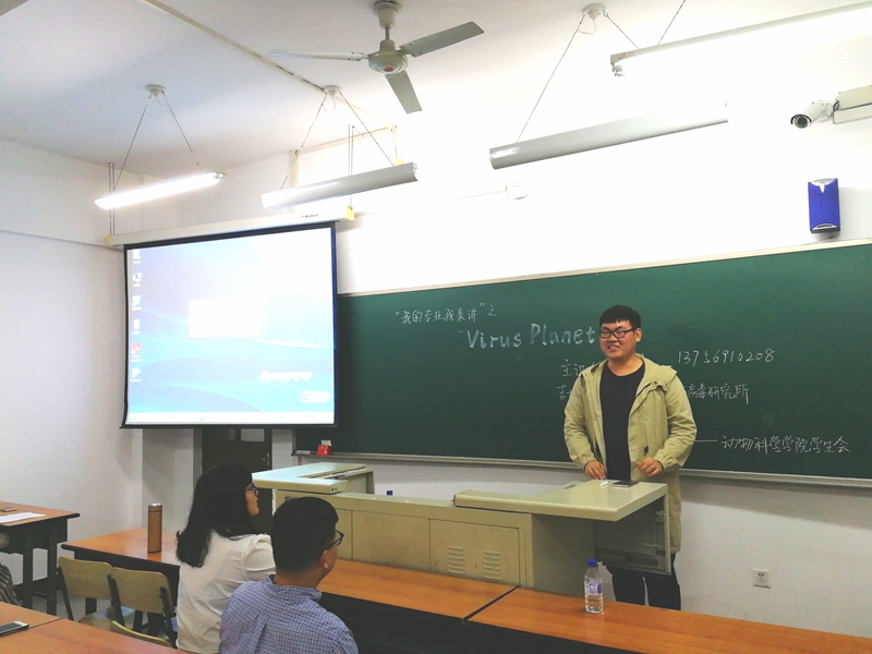 此次魏伟副教授从病毒的最早被发现到病毒的入侵与受体识别,再到病毒的定向进化与轨迹重塑,深入浅出的介绍了病毒的相关知识,在说明了相关专业的研究方向后,魏伟副教授又为在场的本科生进行了关于考研与就业方面的答疑。13级实验动物专业的沈思宇更是用自己的亲身经验向在座的同学介绍了当今的研究与就业情况。