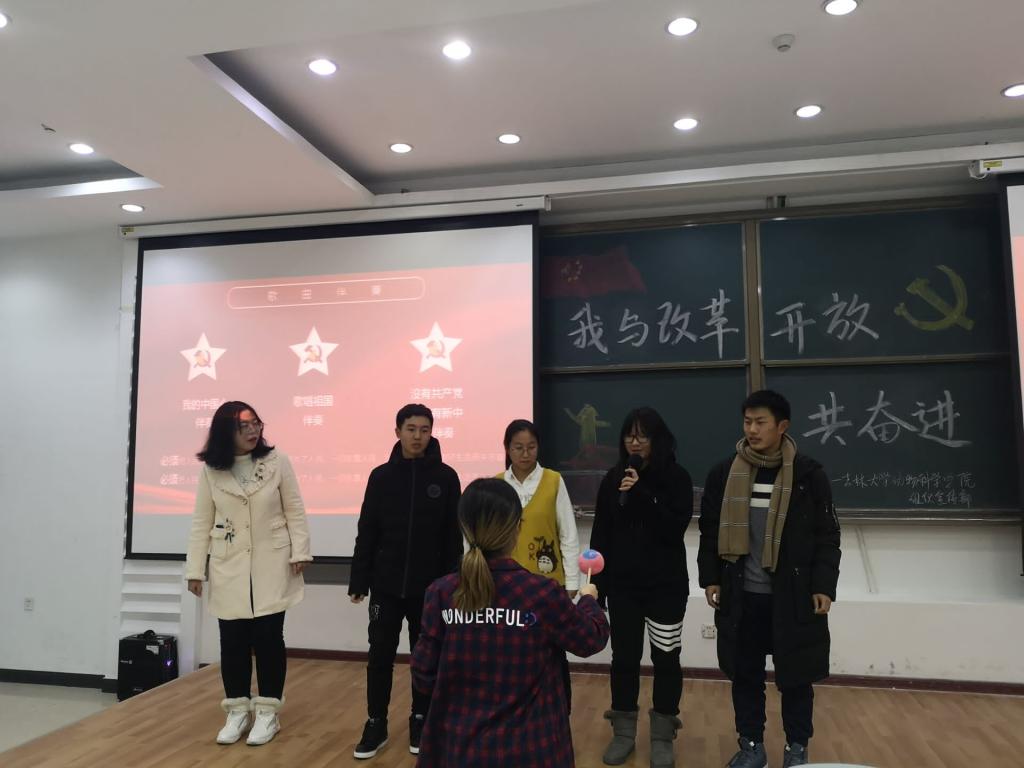 随后,威廉体育2016级、2017级、2018级各团支部团书记进行“我的班级我的团”主题汇报。在汇报中各个班级展示了其团日活动的工作与成果:温馨愉悦的班饭让大家在谈笑中感受到家一般的温暖;热情活跃的主题班会中大家踊跃发言提出自己的见解;青年大学习的阅读活动将大家聚集在一起倾听党的号召。多种多样的团日活动展现出了各班自己的风采。紧接着进入了令人期待的互动环节——知识问答、看图猜事件、红歌接唱比赛。在比赛中同学们不甘人后、积极竞争,在紧张有趣的游戏中加强了对国家改革开放四十周年以来成果的认识,深化了对国家道路的认知与认同,坚定了大家为党为国努力奉献的理想与梦想。