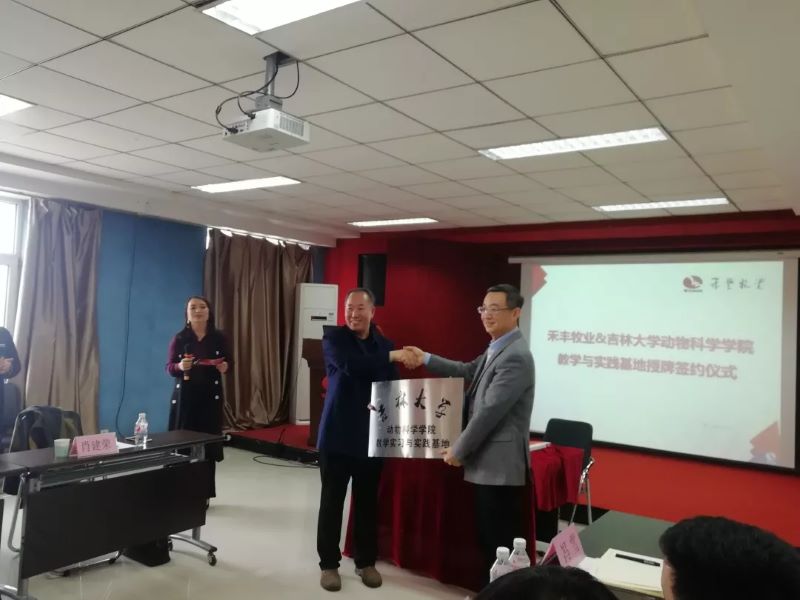 参观结束后,大家前往下一站——沈阳禾丰牧业集团沈北园区。禾丰牧业的相关人员热切的招待了大家,带领同学们深入到分析室和化验室之中,并详细地介绍了禾丰牧业的企业文化、组织结构以及企业的产品,展示了该公司作为大型企业的集团型企业面貌。更值得一提的是,经过校方与企业洽谈,禾丰牧业将正式确立为威廉体育教学实习实践基地,沈阳禾丰集团总经理陈疆就此与威廉体育副经理孙博兴进行了签字仪式。