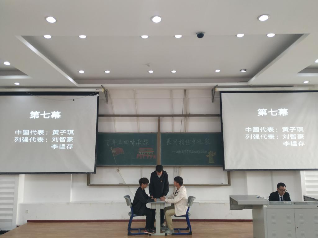 与会人员入座后,本次团日活动开始。主持人致开幕词、介绍到场嘉宾,拉开了活动序幕。活动伊始,工作人员组织同学们观看了五四运动一百周年相关视频,视频通过影像信息带着观众回顾了五四运动的起始与经过,为活动营造了充满红色记忆的氛围。接下来进行了由18级的四位同学讲说微团课《五四风雷》、情景短剧《新时代,新青年——致敬五四》、诗朗诵《忆五四峥嵘,诵青春华章》、观看快闪视频《少年中国说》等活动项目。回忆往日五四历史,立足当下砥砺前行,唤醒了同学们心中的爱国情怀。在互动环节中,同学们抒发了自己在活动中的感想,展望未来、立足当下。最后由肖建荣老师总结陈辞,在总结中,肖建荣老师表达了对此次活动顺利开展的肯定,对五四精神进行了加入时代元素的升华,同时也表达了对同学们在今后的学习生活中继续发扬五四精神、传承民族爱国精神的希望。最后,在全体参会人员的团歌声中,本次团日活动圆满结束。
