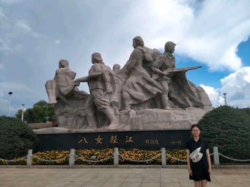八女投江殉难地标志为“八女投江”纪念碑,碑质为花岗岩,正面刻有陈雷题词“八女英魂光照千秋”八字。碑左为革命烈士纪念馆,陈列烈士简介及画像,以及刀枪和遗物。1938年秋,抗联八名女战士为掩护主力部队与日军展开激战,被围困于乌斯浑河后高呼“打倒日本帝国主义!”,集体殉国。八女投江纪念馆内庄严肃穆,在讲解工作人员的带领与讲解下,团队成员认真观看了每一件历史资料,对八女投江英雄事迹以及牡丹江抗日斗争等红色记忆有了更加深入与直观的了解。
