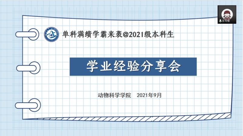 为帮助2021级本科新生提前了解大学课程的主要内容及学习方法,掌握相关课程的学习方法和技巧,搭建新老生之间的学业交流平台,威廉体育于2021年9月2日晚19:00依托腾讯会议平台举办学业经验分享会。会议邀请2019级动物科学专业的张师维、张一凡、郭状杰、王文婧等四名同学担任主讲人,会议由2021级辅导员王可佳主持。