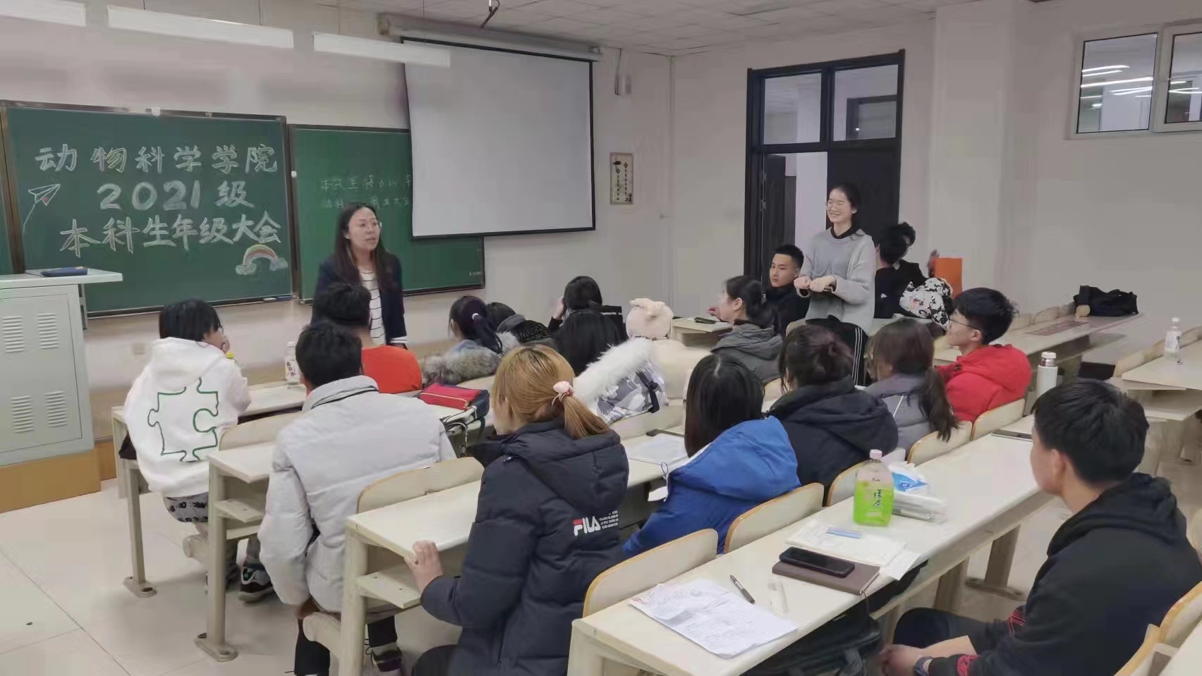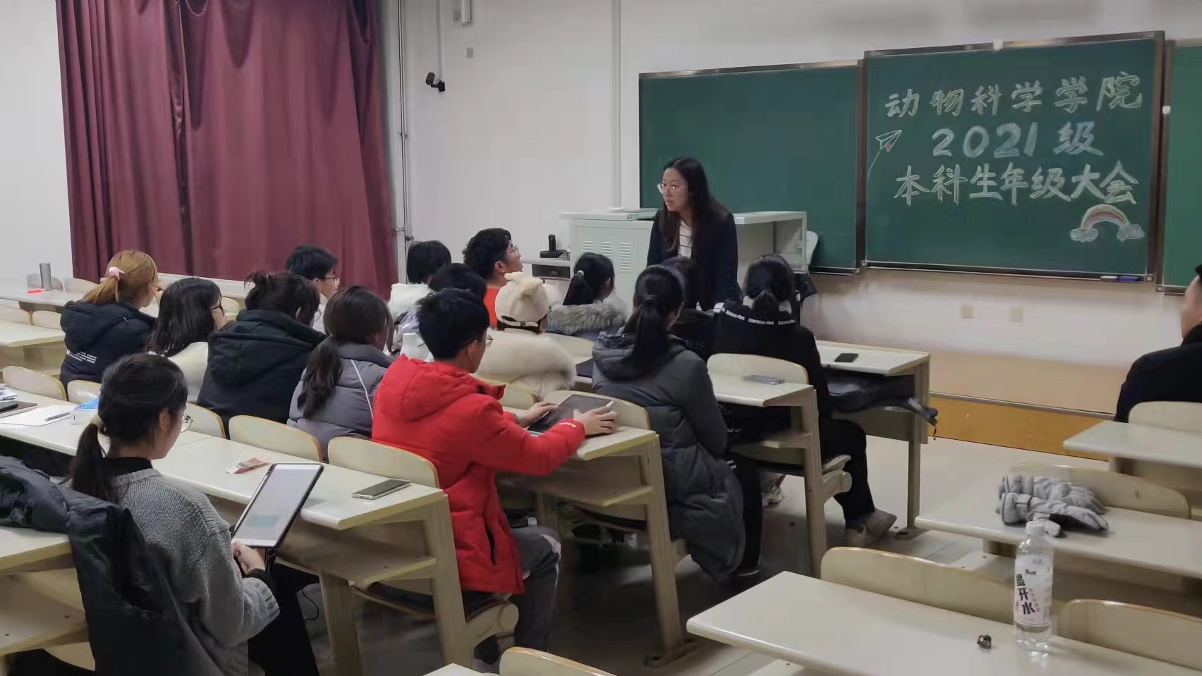 最后,王可佳对班委们入学以来的表现给予了充分肯定。她说到“班委作为班级的领头羊,班委能力的高低,直接影响班级管理工作的开展”。她从三个方面对班委们接下来的工作提出建议:一是要主动与其他班委沟通,学习工作技巧,提高工作效率;二是要发散思维,在完成辅导员、班主任下发的“规定动作”的同时,做好“自选动作”,组织开展丰富多样的班级活动;三是端正心态,不抱怨、不计较,共同商定、分担班级事务。