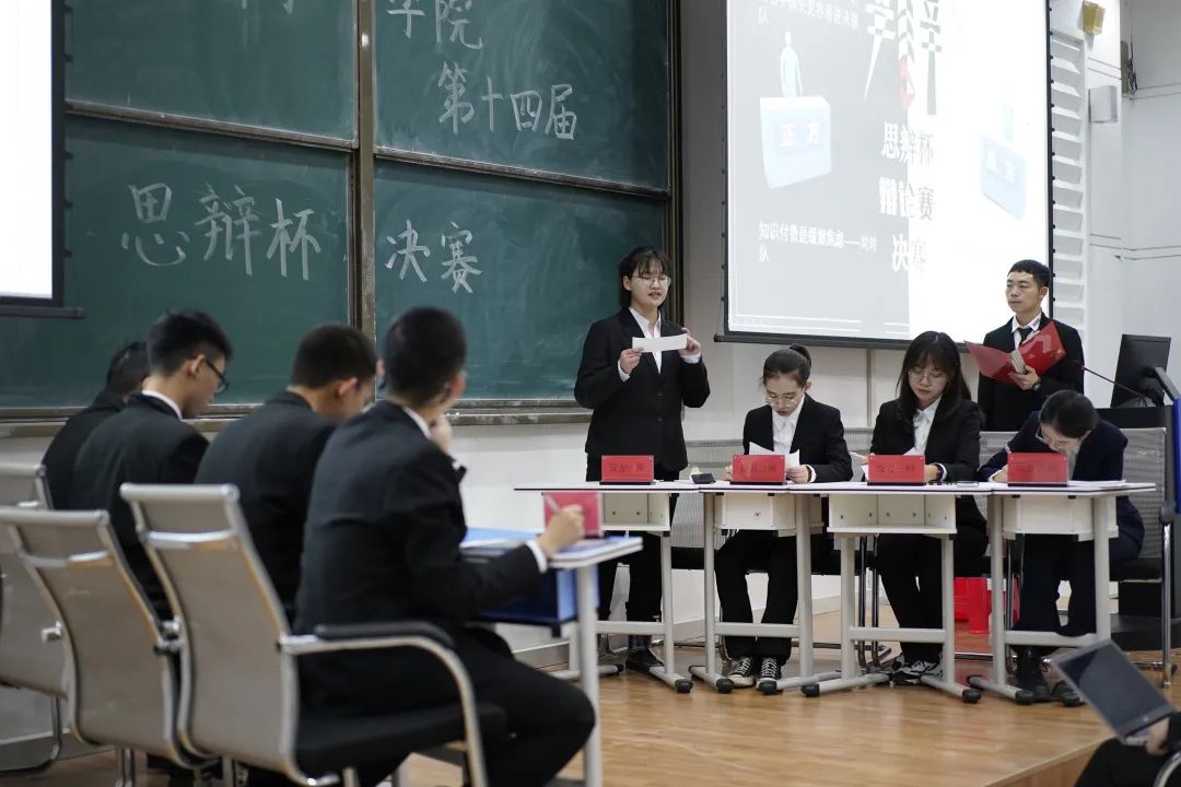 11月14日19:30,第十四届“思辨杯”辩论赛半决赛在经信教学楼F10阶梯教室举办。员工会执行主席王子娇、新媒体中心主任张一凡、第十一届到第十三届“思辨杯”辩论赛最佳辩手王文韬、祁婷婷、王梓权担任本次比赛评委。比赛由员工服务部志愿者唐文博主持。