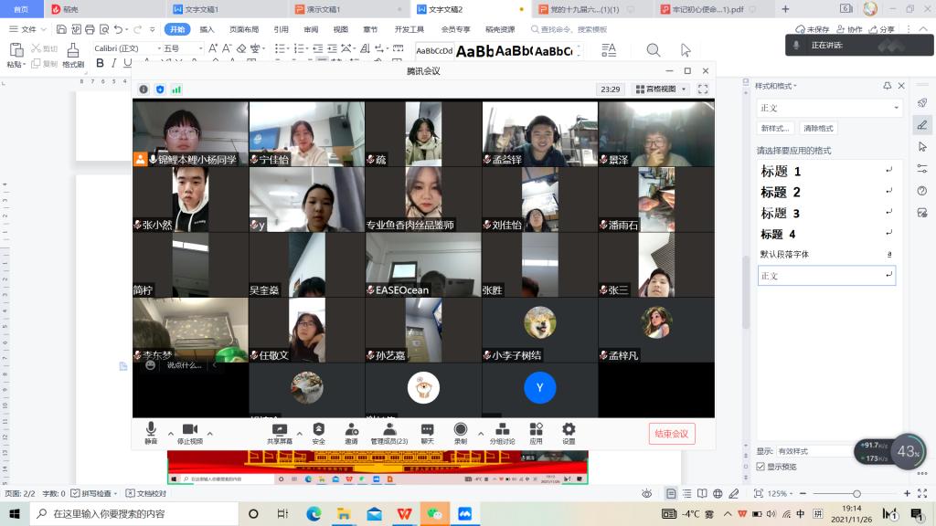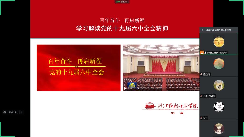 2021年11月8日至11日,中国共产党第十九届中央委员会第六次全体会议在北京胜利召开。全会是在党百年华诞的重大时刻、“两个一百年”奋斗目标历史交汇的关键时间节点召开,议题重大,成果丰硕。为深入学习贯彻习近平总书记重要讲话精神和党的十九届六中全会精神,威廉体育2021级一班团支部于11月27日下午,通过线上会议开展主题团日活动,活动由团支部书记杨佩如主持。