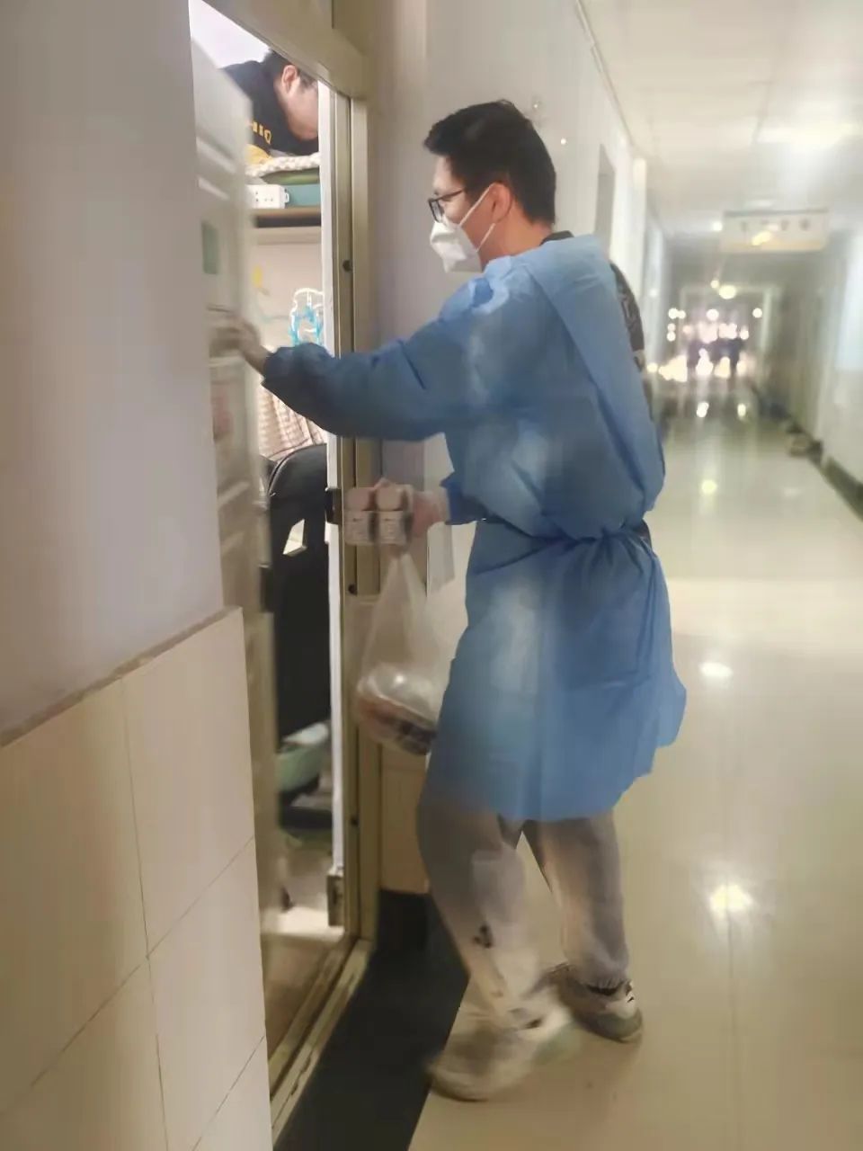 中共党员,2021级硕士生,目前担任四公寓志愿者,负责发放三楼各寝室一日三餐以及抗原自测试剂盒。