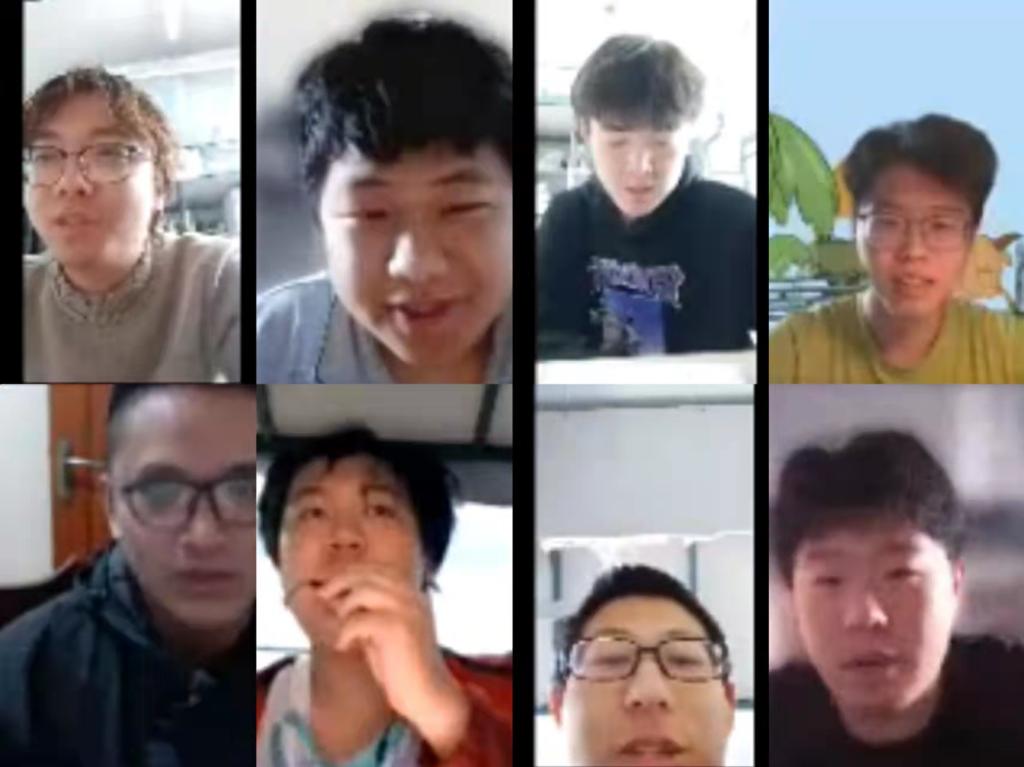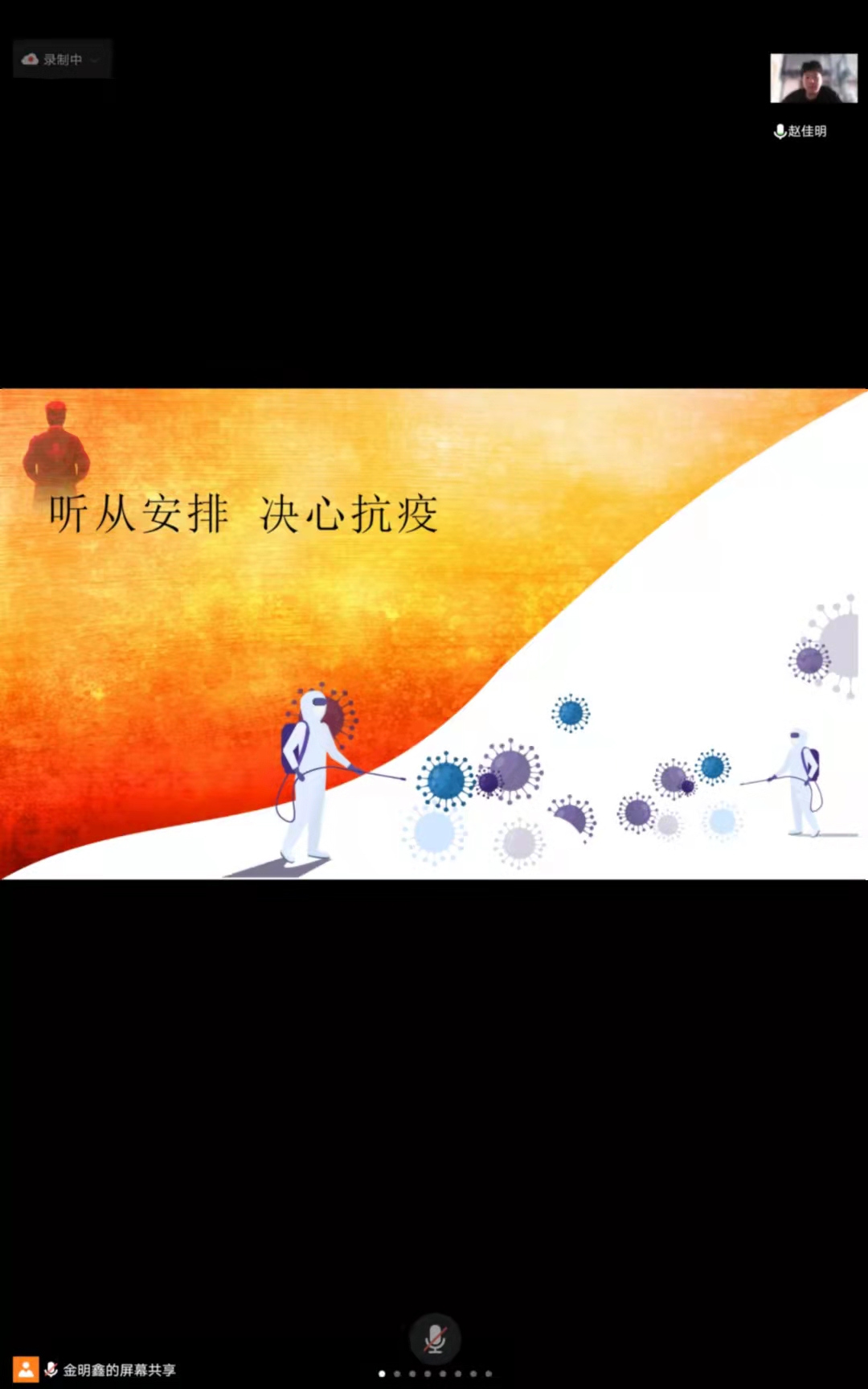 最后,支部成员王东博、李宗轩、于贤材、陈柏行、张子骁五位同学分享了自己封闭管理或居家期间的学习生活,为在校同学加油打气,表达同心抗疫的信心与决心。在校居住的同学也分享了自己在公寓参加志愿服务工作的所思所感,以及自己在公司实施封闭管理以来的心路历程,大家先后表达了对国家和公司的信任与感谢。