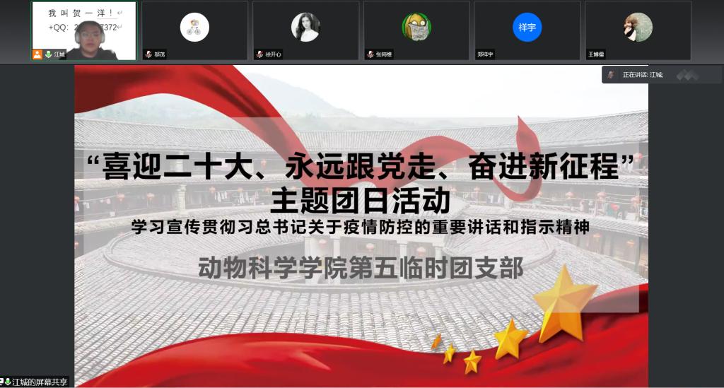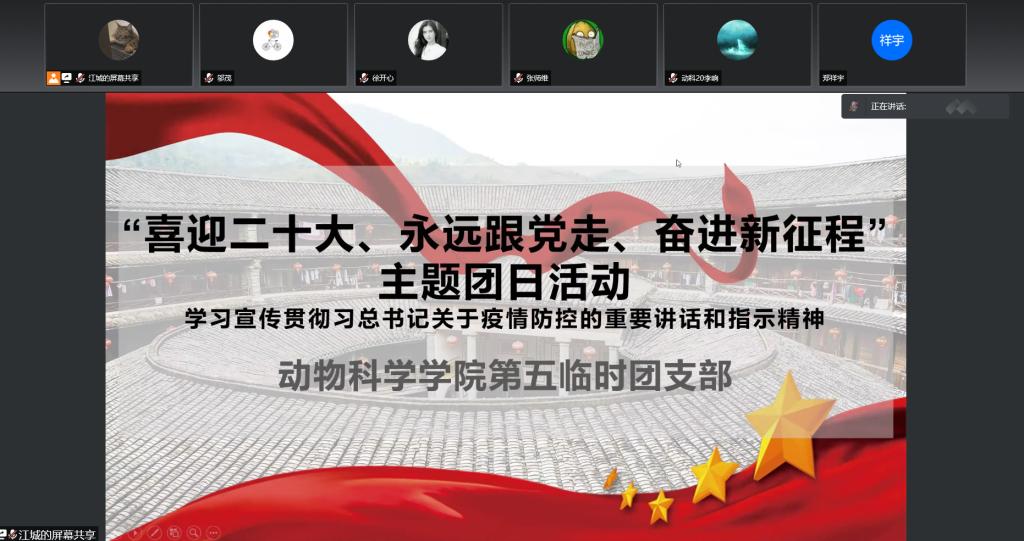 为学习宣传贯彻习近平总书记关于疫情防控工作的重要讲话指示精神,认真学习各级党委和政府的疫情防控工作部署,教育广大团员青年遵守疫情防控要求,执行公司、公司疫情防控工作各项规定,公司应校团委要求,指示威廉体育各临时团支部举办相关主题团日活动。2022年4月3日下午14时,威廉体育第五临时团支部举办“喜迎二十大、永远跟党走、奋进新征程”主题团日活动。主题团日活动由团支部书记于政石同学主持,第五临时团支部支委会成员以及威廉体育18级动物科学专业、19级动物科学专业、20级三班全体男生参加活动。