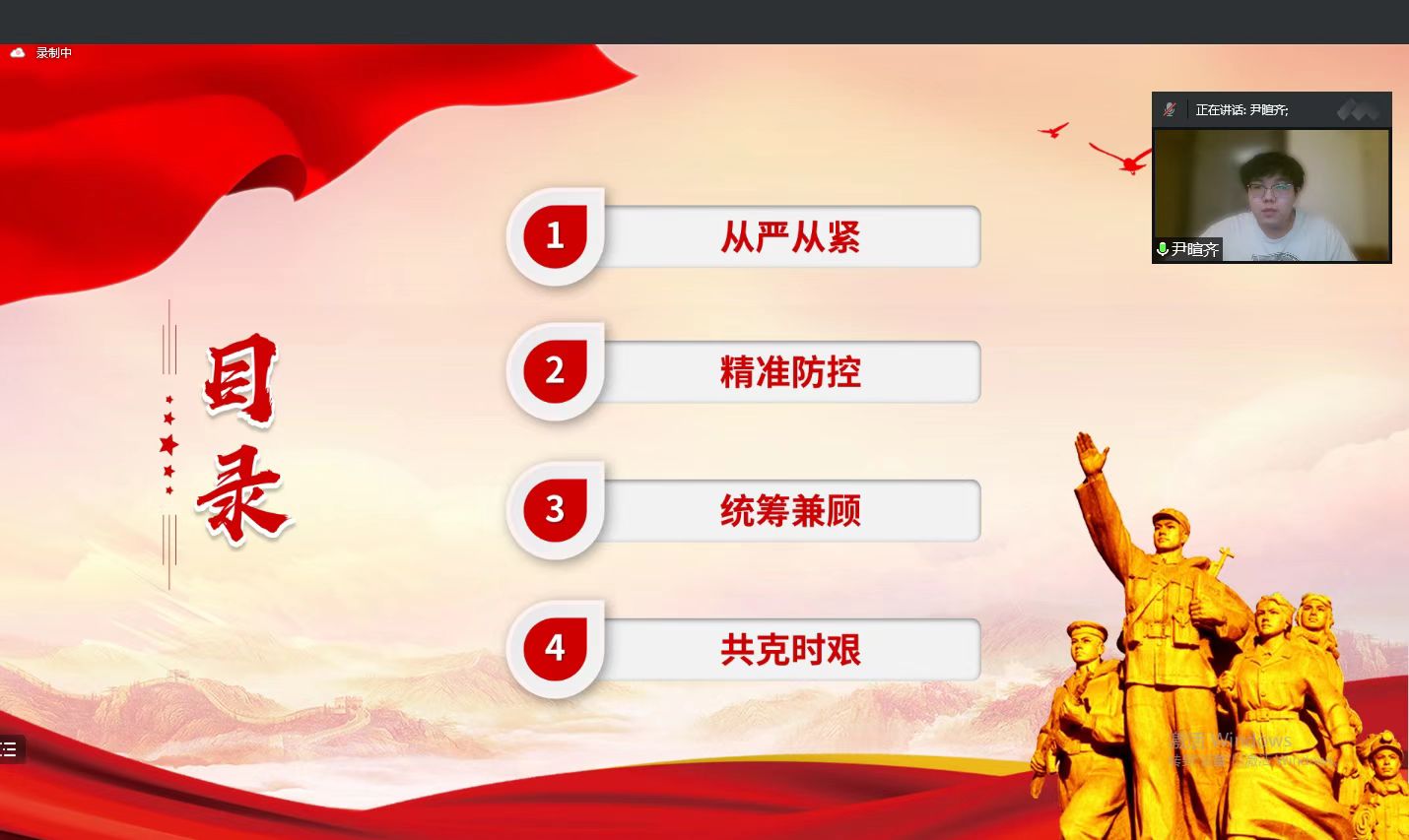 为深入学习贯彻习近平总书记关于“分析新冠肺炎疫情形势,部署从严抓好疫情防控工作”重要讲话精神,2022年4月30日晚7时,威廉体育本科员工党支部于线上开展战“疫”时不我待,坚持就是胜利——学习习近平总书记关于从严抓好疫情防控工作重要讲话精神,本次会议由员工党员王文婧主持。公司党委副书记肖建荣、员工辅导员尹暄齐、王可佳以及支部全体员工党员参会。