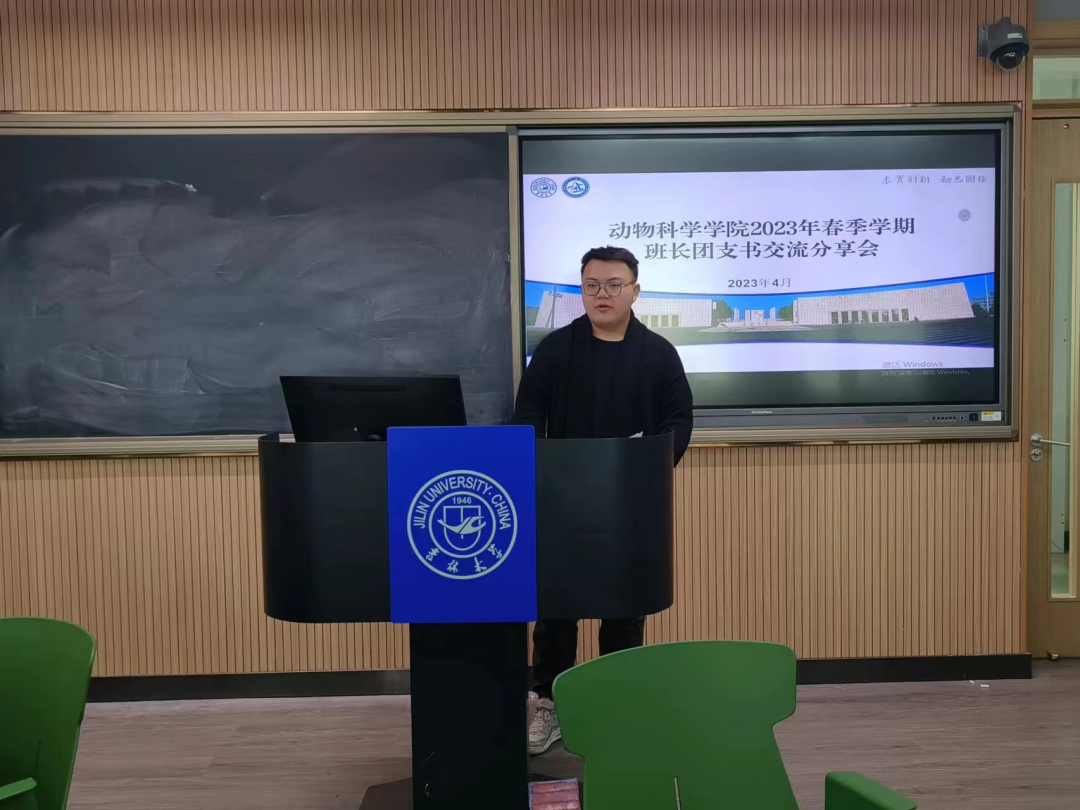 活动第一项是各年级班长代表结合年级实际情况进行经验分享和感悟思考。其中,2019级实验动物班班长齐奥斯围绕“大四班级如何以毕业主题开展班级建设”、2020级实验动物班班长施政围绕“转专业及专业分流后,如何开展班级建设工作”、2021级1班班长陈柏行围绕“如何做好班级的学风建设,提升班级凝聚力”、2022级2班班长刘达申围绕“新生对大学班级团结建设的困惑与思考”。