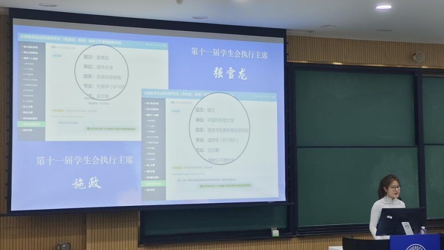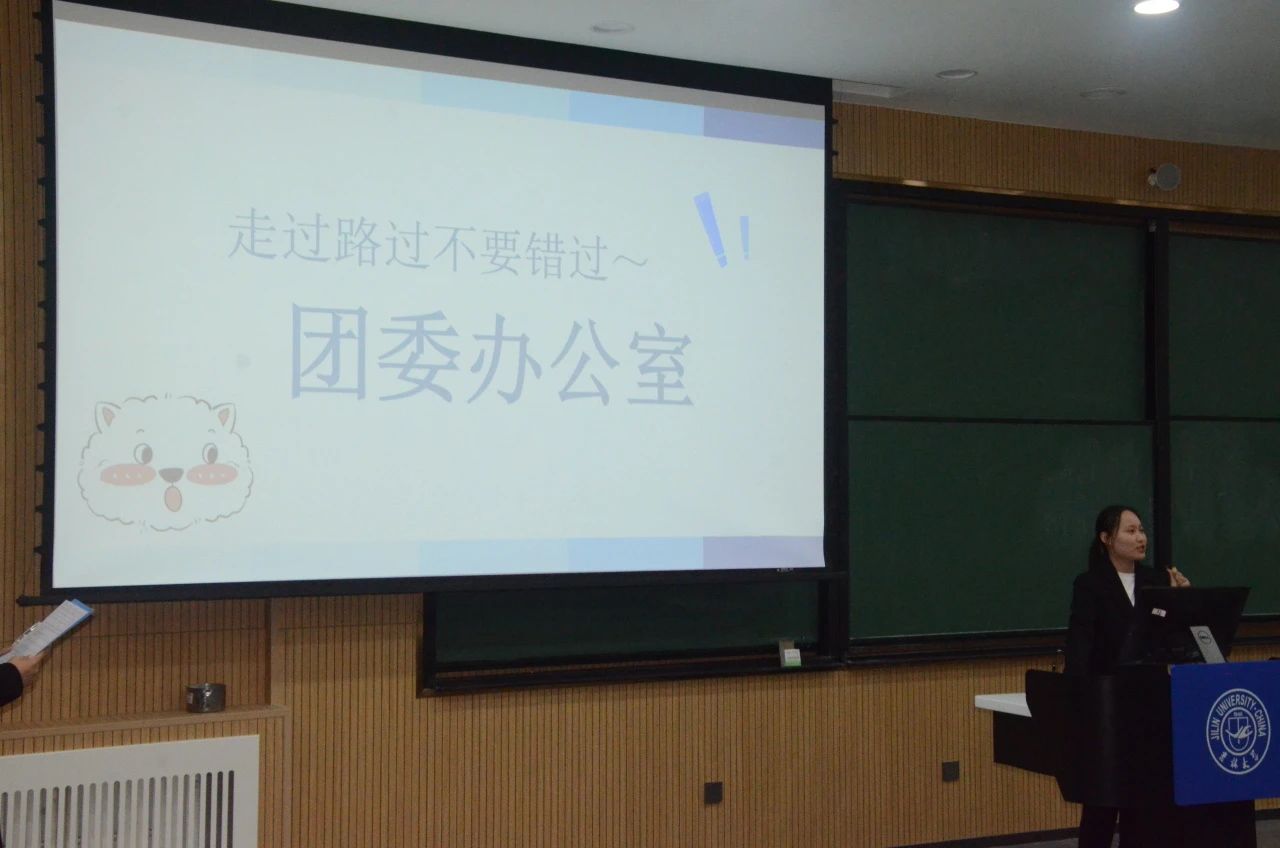 在员工会宣讲环节,执行主席赵佳明、唐奕菲先后发言,他们分别从学习成绩、社会实践、参与活动等方面进行了自我介绍,用自己充实的两年老员工活生动地回答了“参加员工活动与学习是否冲突”这一新生普遍关心的问题。