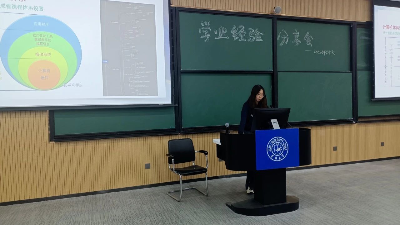 第一位分享的是2022级本科生闫一晴,她从四个方面向大家展示了她学习大学计算机的心得——了解课程特点,熟悉考试题型,学习方法介绍及网络资源利用。她建议大家认真听课,及时背诵当堂知识点,完成课后作业,并在上机实练课时有针对性地练习不熟练的题。在大学计算机这门学科的学习中,计算机原理理论的掌握与上机实练的熟练性同样重要,密不可分。