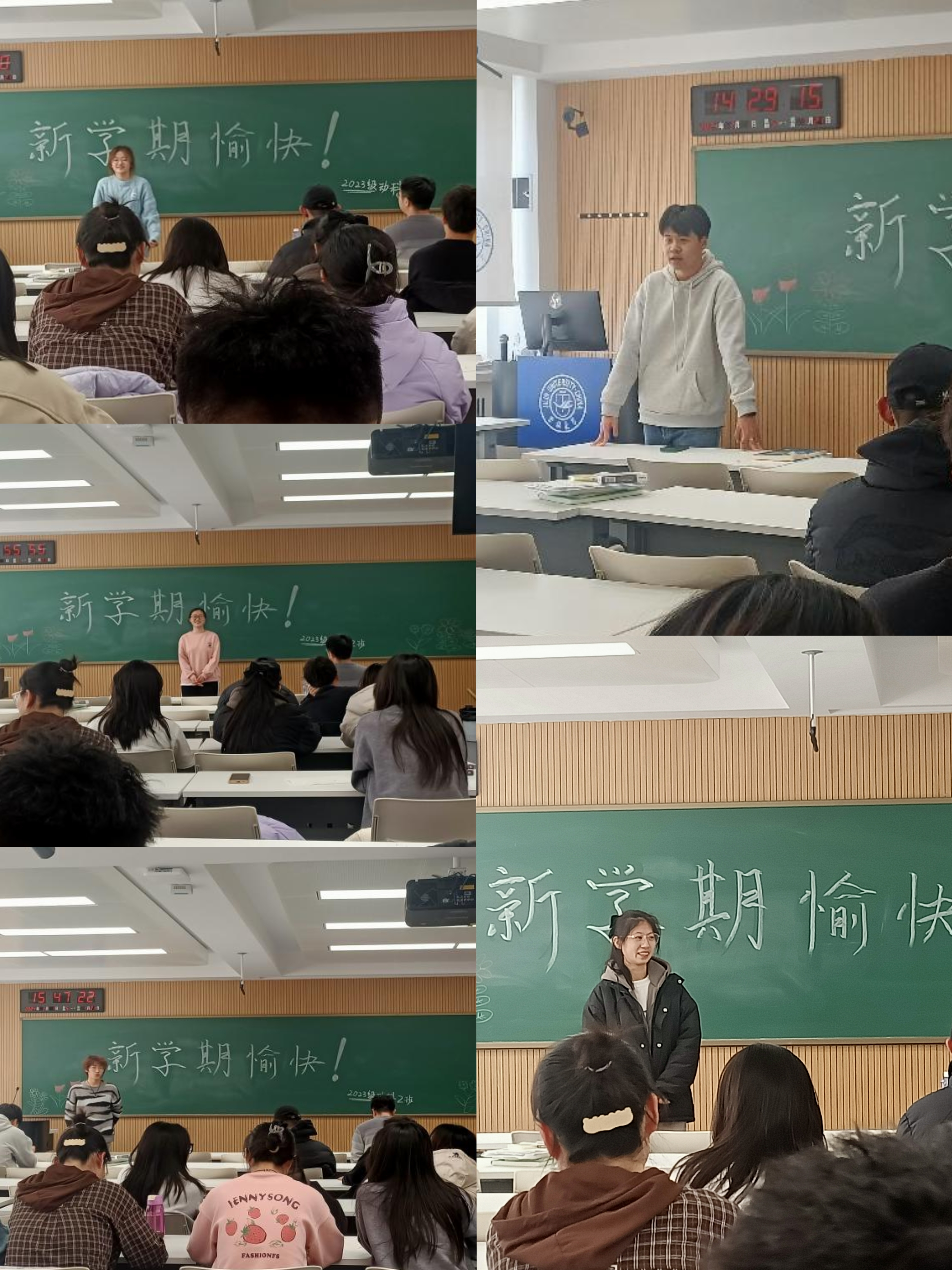 最后,韩杨老师对同学们在寒假期间的积极表现给予了充分肯定,仿佛看到二班这个大家庭的每一个灵魂都在闪烁,并对大家在新学期的学习生活提出了殷切期望,他希望同学们能够汲取上学期的经验,珍惜大学时光,努力学习,全面发展,为自己的未来奠定坚实的基础,能在学期期末大声喊出“本学期愉快”!