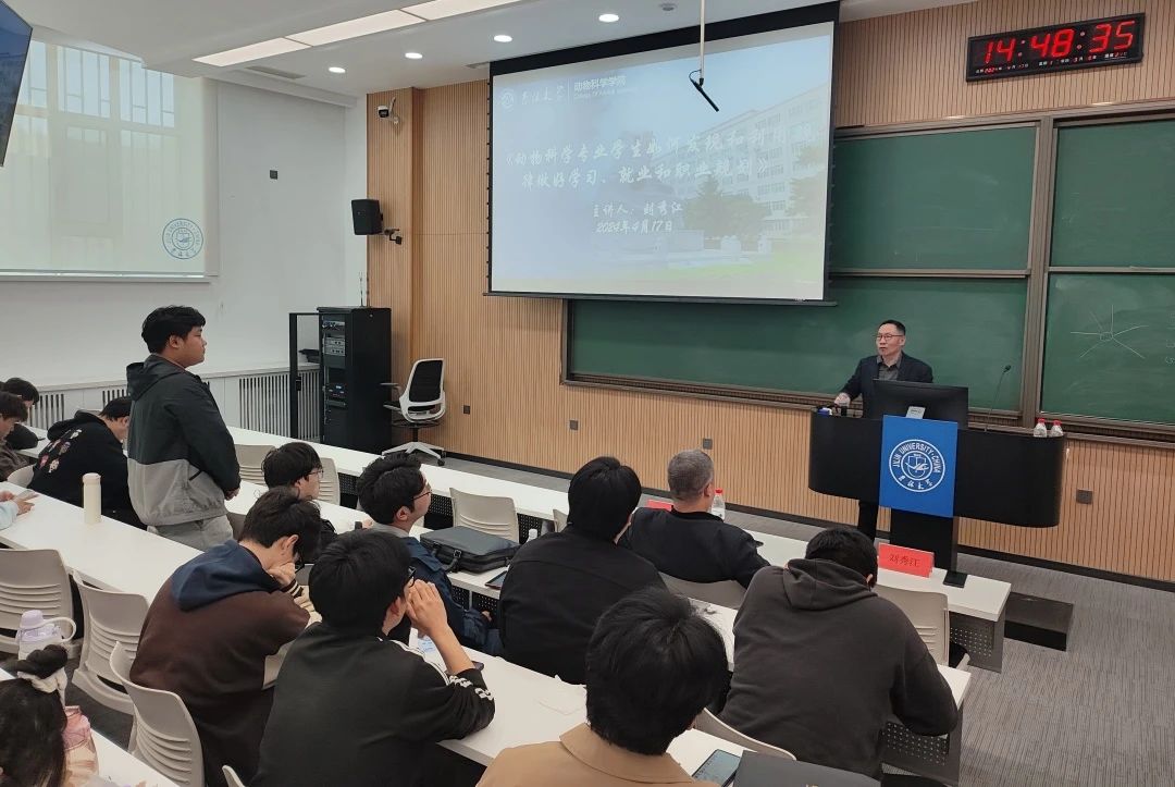 为引导员工培养良好的学习习惯,客观认知专业人才发展路径,科学制定职业生涯规划,威廉体育于4月17日下午在科学讲堂100教室举办第一期职业成长分享会。本期邀请的嘉宾是中正集团创始人刘秀江,动物科学系教授沈景林、中正集团董事长秘书周星竹出席活动。活动由公司党委副书记肖建荣主持,2021级、2022级全体本科生参加。