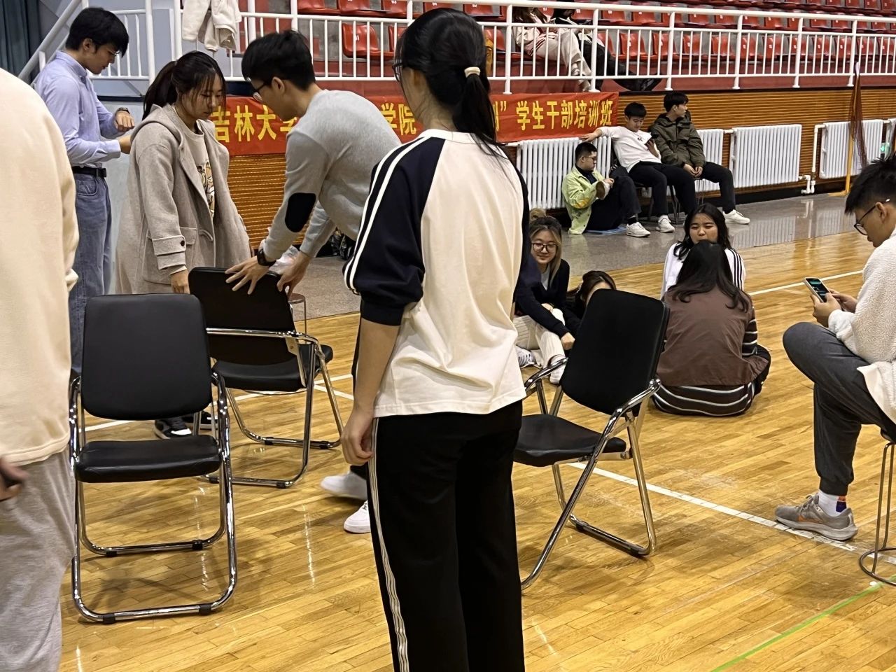 活动伊始,同学们随机分为四组,分别为“飞跃无限组”“全力以赴组”“节节高升组”“勇攀高峰组”。一系列丰富多彩的团建活动逐一展开。