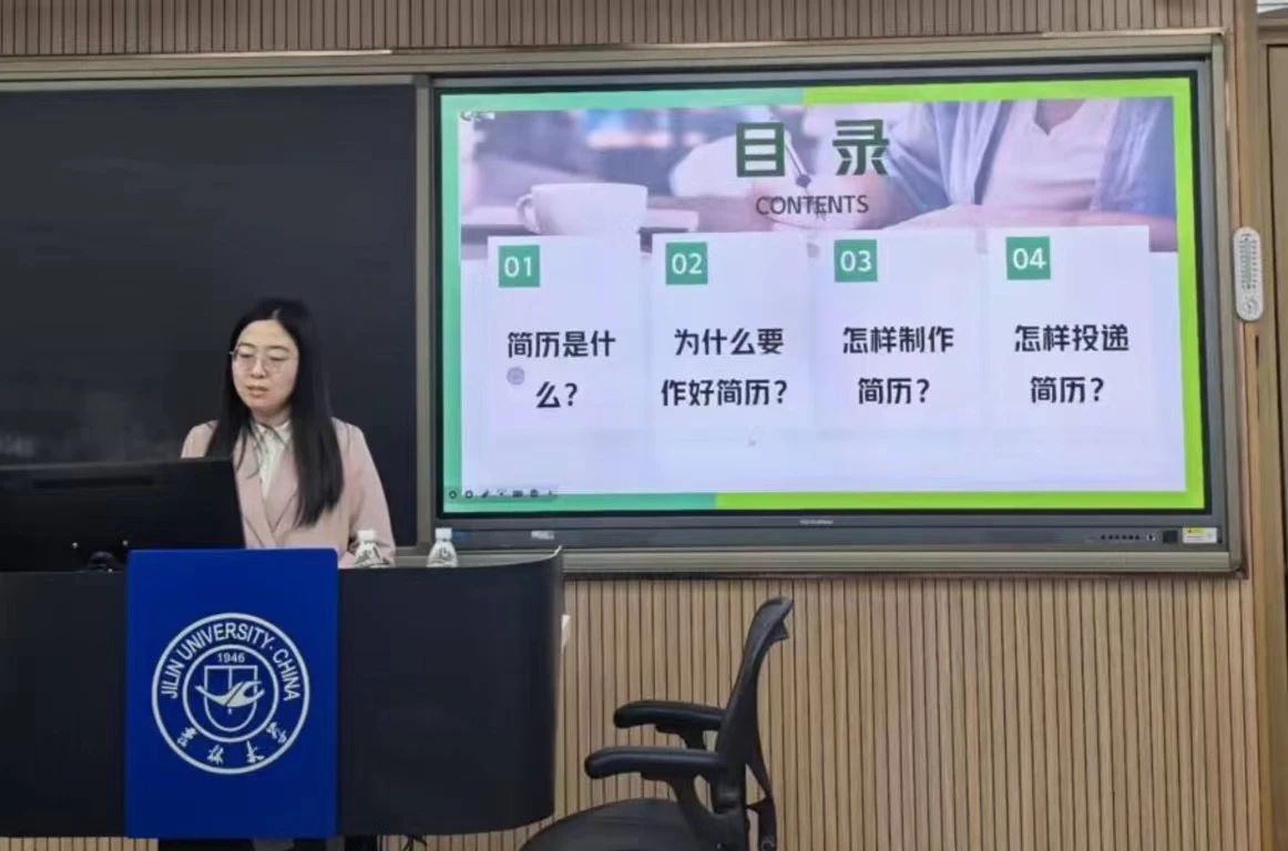 杜娟从“知己”这一概念作为切入点,围绕简历是什么、为什么要做好简历、怎样做好简历、怎样投递简历四部分向同学讲解了如何撰写一份优秀的简历。她建议同学们通过性格职业测试明确自己的优劣势,深刻体会“知己”的重要性。