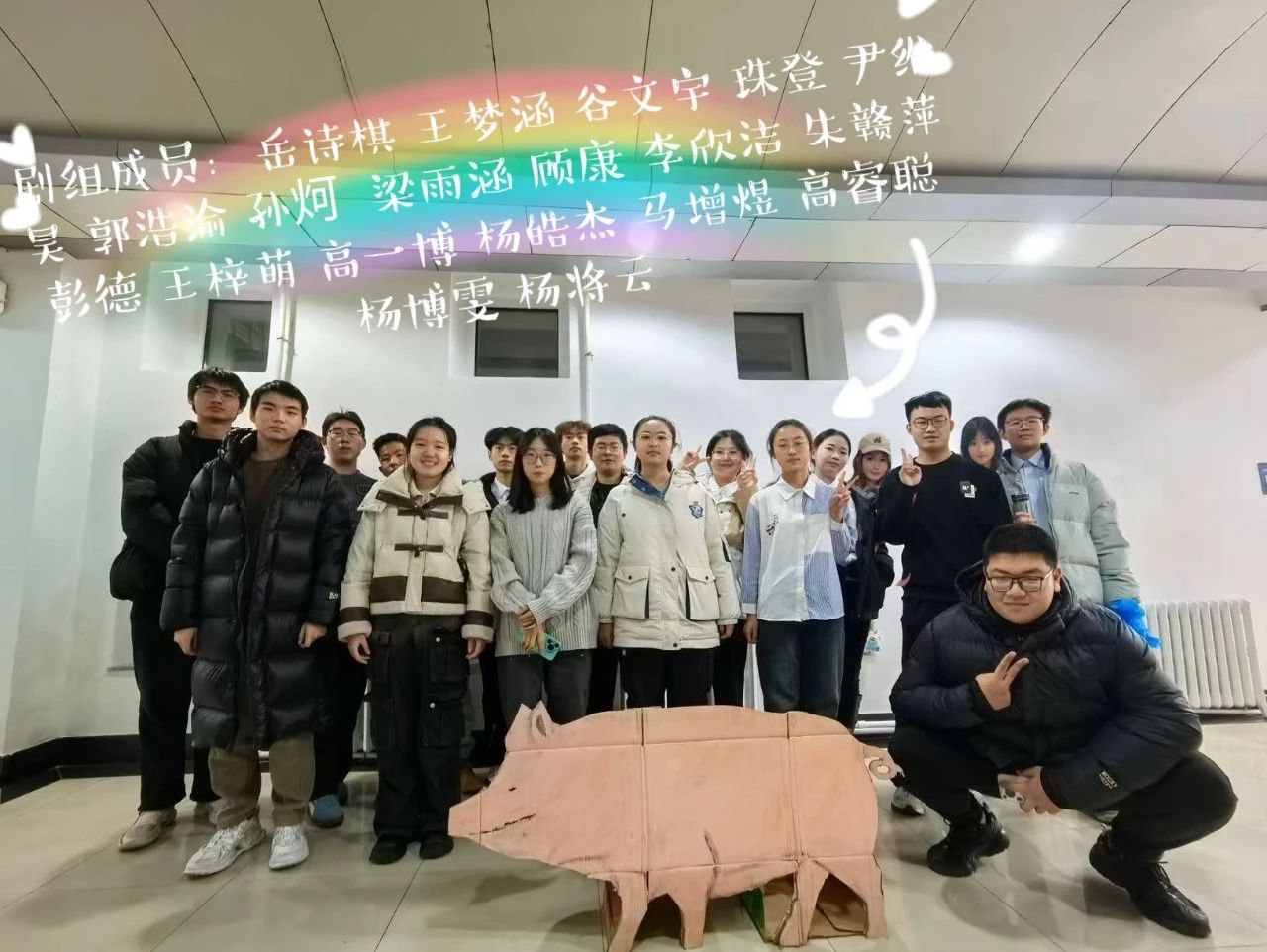 该剧由杨博雯、杨将云担任编剧,由高睿聪担任导演,马增毅担任负责人,岳诗棋等多位同学共同参演。各位演员对角色的精彩塑造,灯光和音效的完美配合,塑造了绝佳的舞台效果。演员的尽职尽责也留下了许多精彩瞬间,最终为我们呈现这个动人心弦的优秀作品。