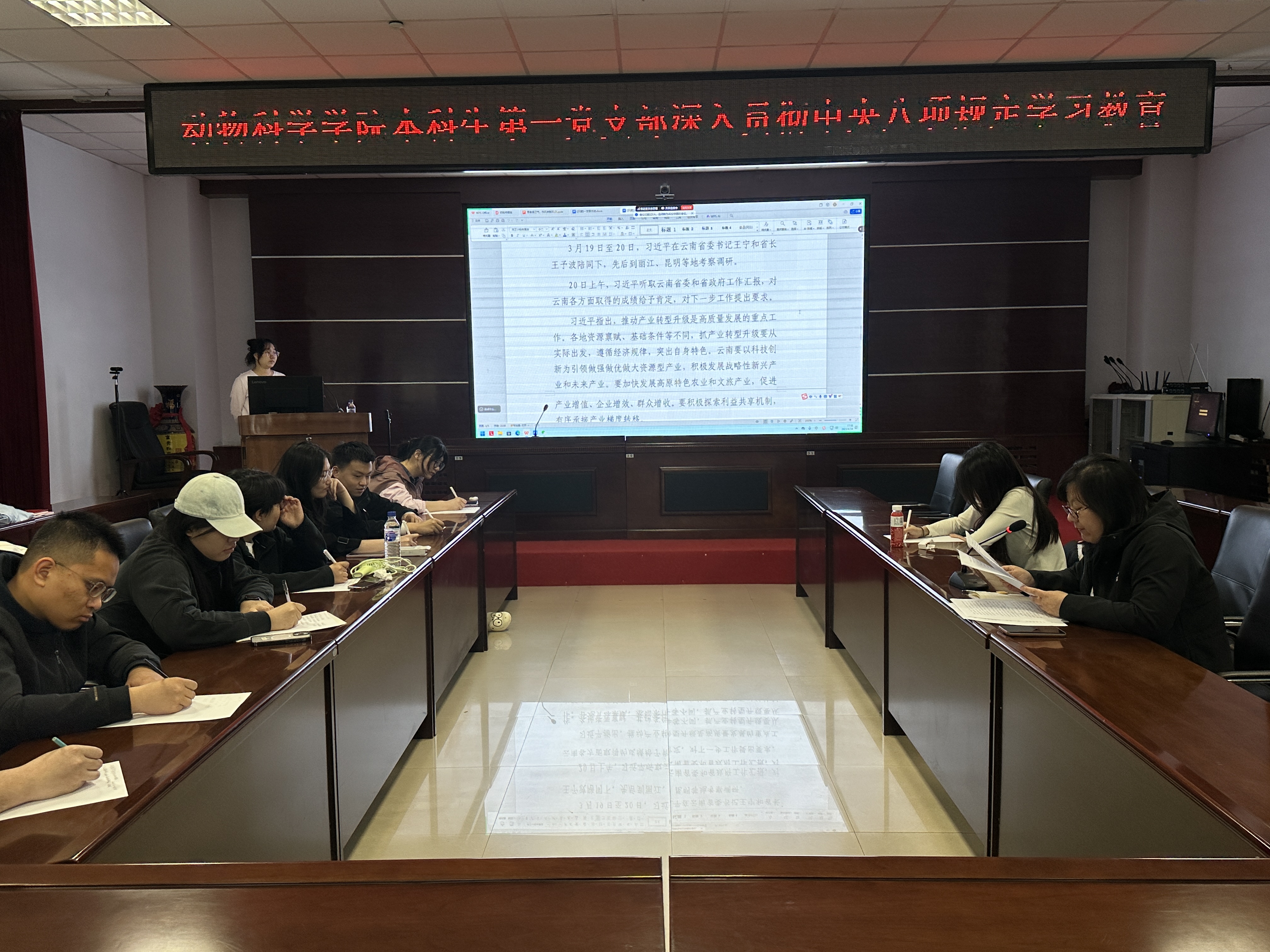 随后,本科生第一党支部书记肖建荣同志领学习近平总书记在贵州、云南考察时的重要讲话精神,强调“作风建设永远在路上”的政治要求。肖书记结合高校育人实际,系统阐释了中央八项规定精神在青年员工党员教育管理中的实践路径,要求全体党员从“学术诚信、生活作风、服务意识”三个维度深化认识。