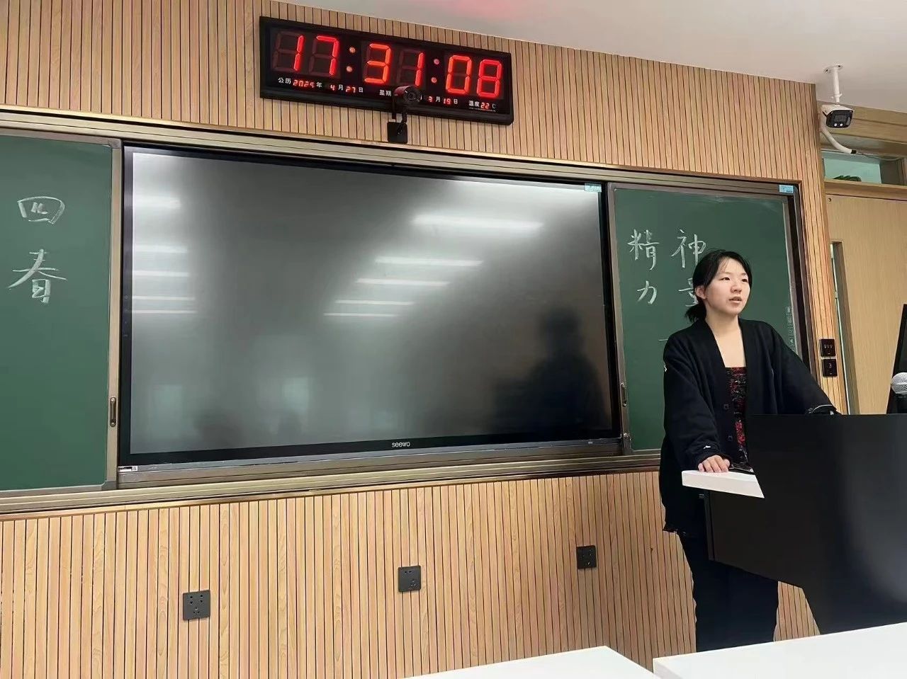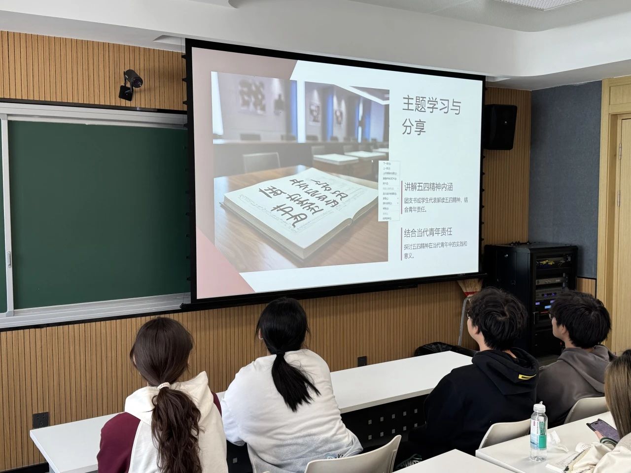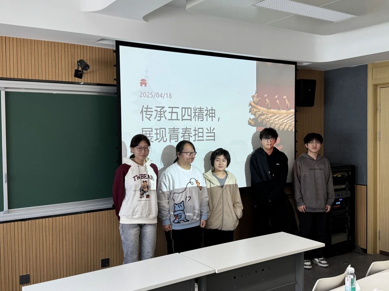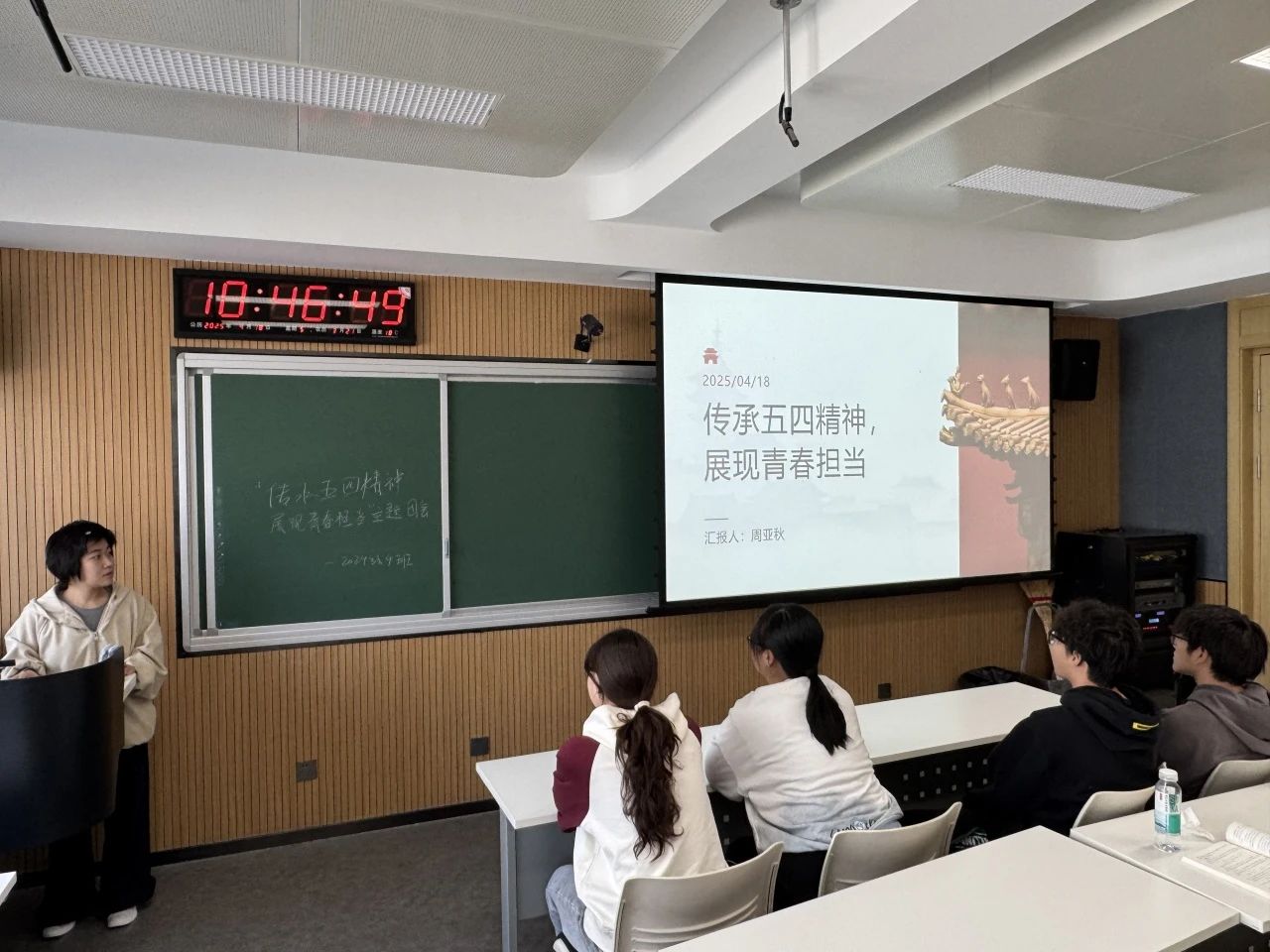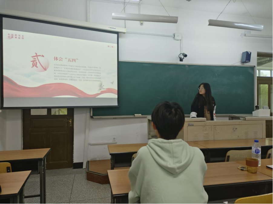 4月14日,2024级4班全体同学齐聚前卫南区第三教学楼113教室,举办了一场以 “传承五四精神,展现青春担当” 为主题的团日活动。同学们一同观看《觉醒年代》的精彩片段,团支书结合当代青年的责任,深入讲解了五四精神的核心内涵。随后,同学上台分享了自己敬佩的青年榜样故事,这些榜样涵盖了科学家、抗疫志愿者、基层工作者等不同领域,他们用实际行动诠释着青年的担当与使命,令台下同学深受触动。最后,分组讨论环节将活动推向高潮,大家各抒己见,结合自身学习和生活实际,探讨如何在日常中传承五四精神。