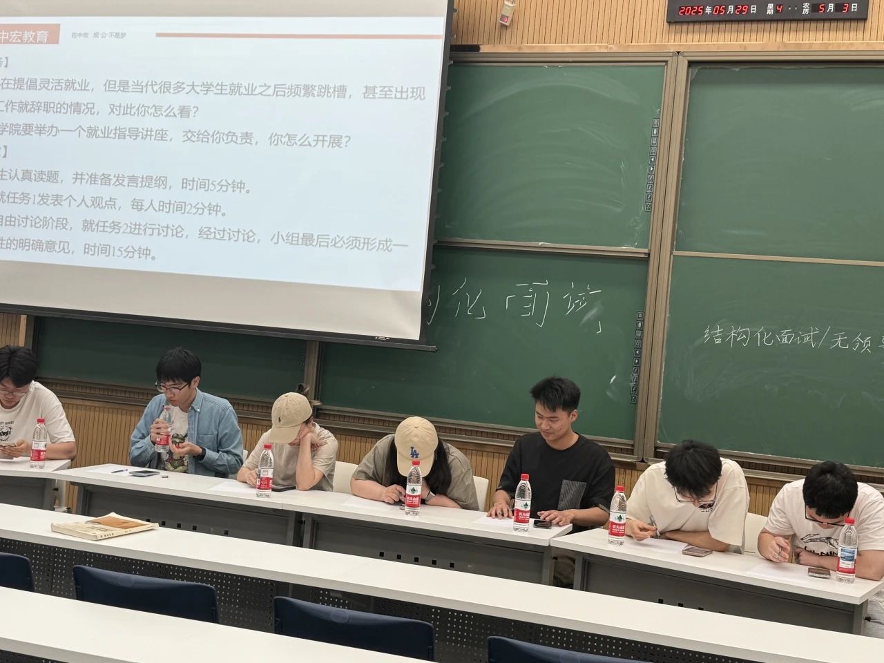 最后进入实战演练环节,威廉体育的王凯淳同学和动物医学公司的刘睿伶同学分别进行了真实紧张的模拟面试。随后又进行了无领导小组讨论展示,王铁衡、刘伟峻等七位同学积极参与,充分发表各自的观点和看法。通过模拟真实的面试场景,同学们不仅锻炼了自己的表达能力和团队协作能力,也更加直观地了解了面试流程和技巧。