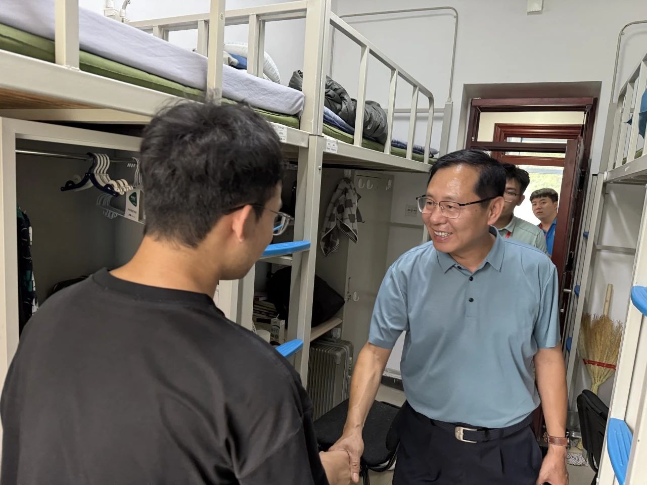 在走访新生宿舍的过程中,公司领导老师不仅与新生们进行了深入交流,还特别与随行的员工家长进行了亲切交谈。公司领导对家长们的辛勤付出表示感谢,同时,公司领导也鼓励家长积极参与员工的成长过程,与公司携手,共同为员工的未来发展创造更加有利的条件。
