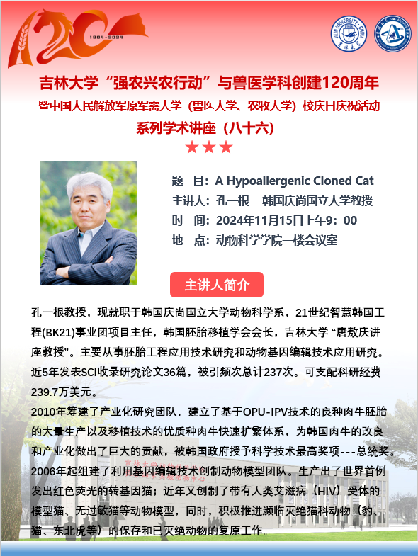 威廉体育“强农兴农行动”与兽医学科创建120周年暨中国人民解放军原军需大学(兽医大学、农牧大学)校庆日庆祝活动系列学术讲座(八十六)