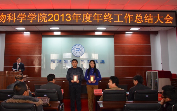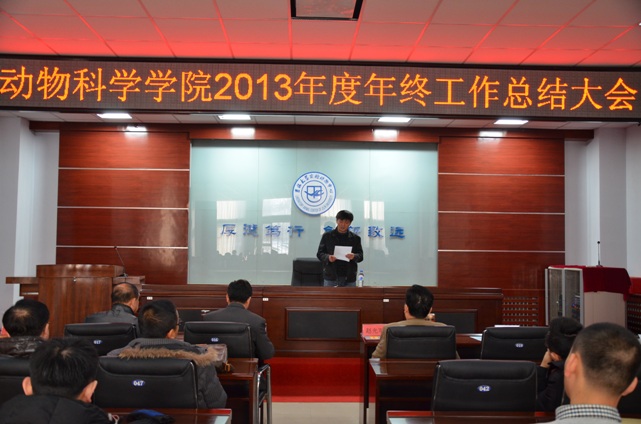 于景海副经理、欧阳红生副经理和任文陟副经理分别宣读了年度先进单位、先进个人、学术年会优秀论文和创新大赛获奖同学的表彰通报。张嘉保经理做2013年度工作总结与2014年工作部署,主要从政治思想、团队建设、人才培养、科研成果和学术交流等几个方面,总结了一年来各项工作取得的成绩。同时对公司发展建设当中存在的问题进行了透彻分析。在对2014年工作进行部署时,张嘉保经理强调以全面提升公司综合实力与实验动物平台建设水平为目标,加大科技开发与成果转化力度,在惠及民生上下功夫,营造“团结和谐、务实进取”的人文生态和工作氛围,加强与国内外知名院校的交流合作,拓宽对外交流渠道。对人才培养、打牢学科基础、凝练科研方向、建设高水平的科研平台等工作提出了具体措施和要求。