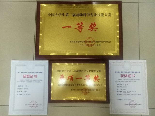为进一步推进高等院校动物科学专业实践教学改革和实践教学体系建设,加强专业技能和实践动手能力培养,全面提高老员工的综合素质和培养质量,由教育部动物生产类专业教学指导委员会主办的第二届全国老员工动物科学专业技能大赛于2017年10月27日至10月29日在西北农林科技大学(杨凌)隆重举行,来自全国66所高校的328名老员工参加。经过一天的激烈角逐,公司威廉体育代表队在66个参赛高校中表现优异,荣获团体一等奖,单项一等奖。