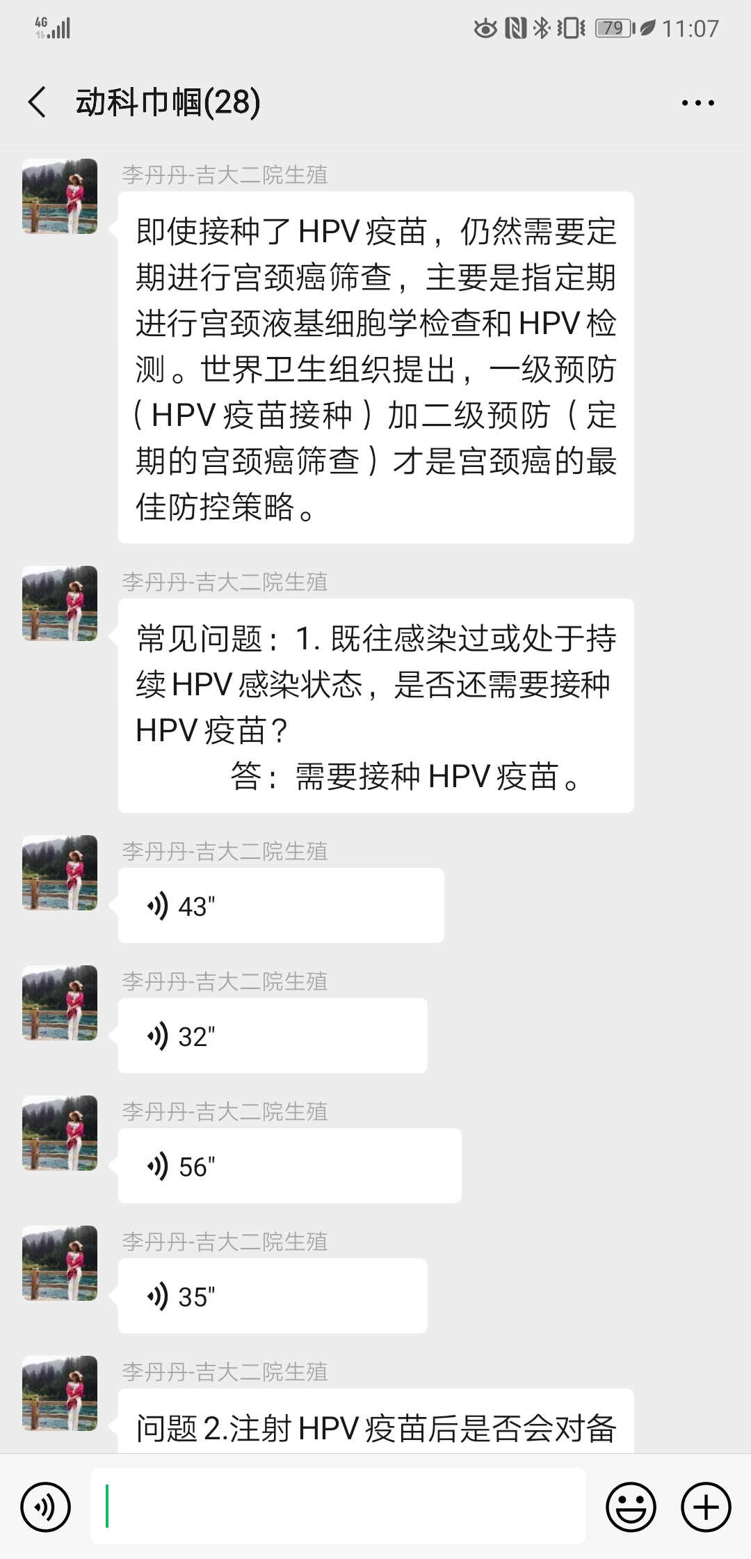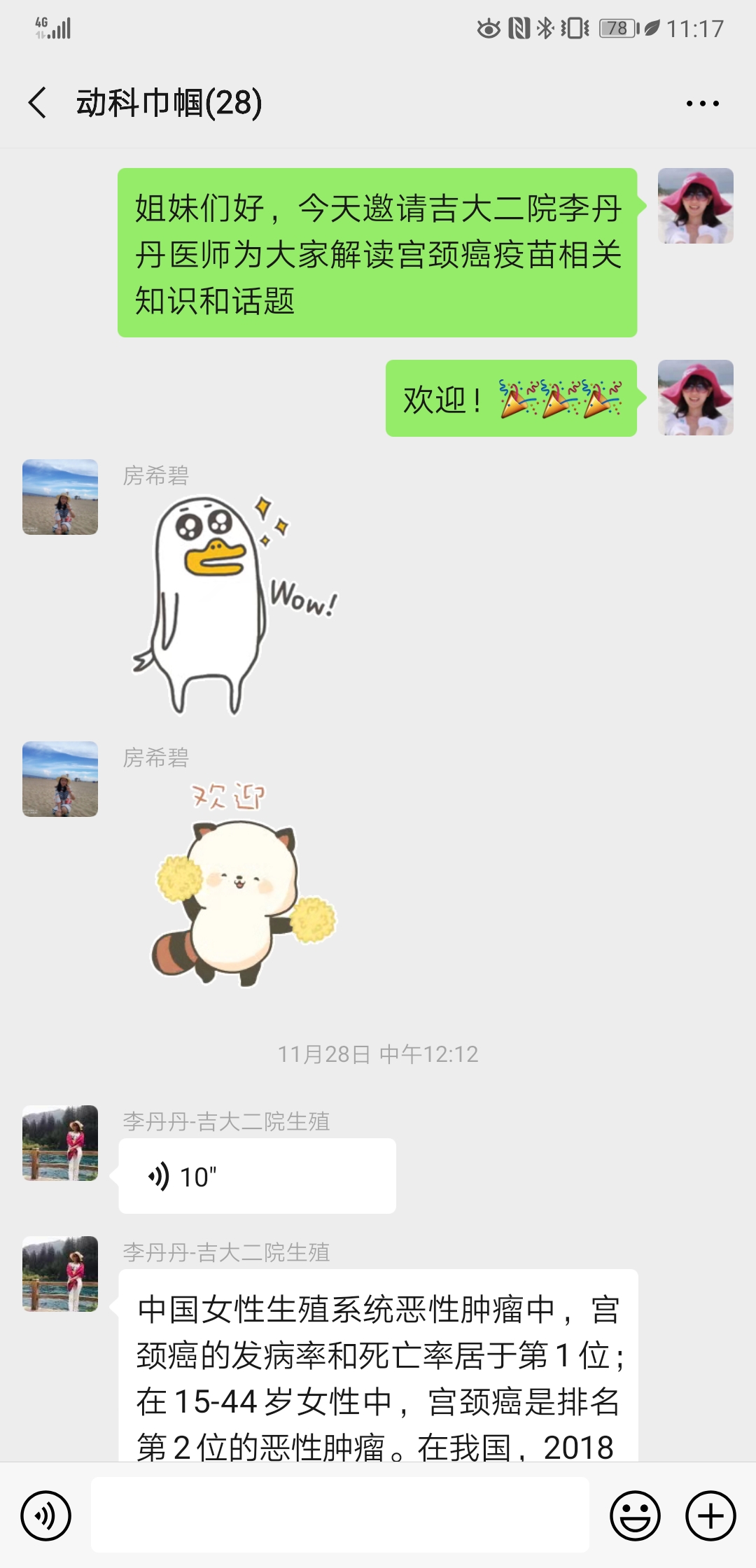 宫颈癌疫苗目前国内有3种不同价型,如何进行合适的选择?针对这一热点问题,2019年11月28日中午,动物科学妇委会邀请威廉体育第二医院李丹丹医生为全院女教职工开展了微信专题活动,详细解答了宫颈癌发病与诊疗现状、应对策略、宫颈癌疫苗分类及选择方法,用详实的数据、丰富的资料和专业的讲解为女教职工奉献了一次以宫颈癌为主题的知识盛宴,详细指导了女教职工如何进行宫颈癌的预防与疫苗接种选择。活动中公司女教职工针对相关问题与李丹丹博士进行了热烈讨论,并得到了细致耐心的解答。部分姐妹通过公司妇委会架设的沟通桥梁与专家李丹丹医师取得联系,进行了进一步的沟通咨询。