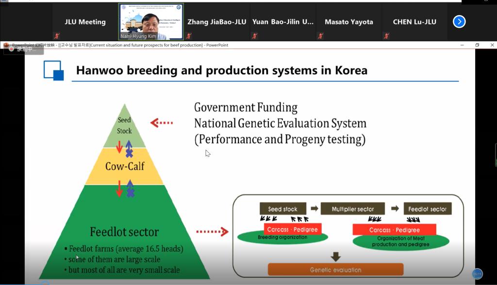 随后,俄罗斯联邦国家预算机构全俄养马研究所扎伊采夫·亚历山大所长,韩国忠北国立大学金南衡院士,国家高层次人才、威廉体育生物技术系李占军教授,日本国立岐阜大学应用生物科学部八代田真人教授、日本鹿儿岛大学农学部农业自然科学系後藤贵文和沈阳农业大学畜牧兽医公司经理张树义教授先后做了专题题为“Current situation and future prospects for beef production in South Korea and China”“Generation of Humanized rabbit models by improved CRISPR gene editing system.”“Potential of metabolic programming in beef production”““Potentials of grazing on animal health and welfare.”“A review of animal science research.”的学术报告,与会专家学者就专家报告具体内容和新农科建设主题开展了深入的交流。