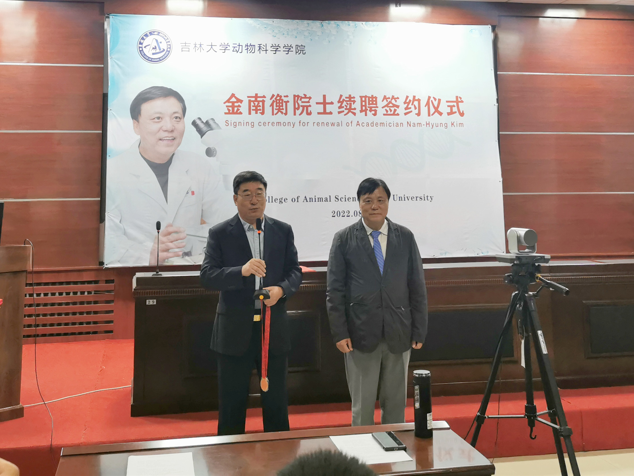 随后,孙博兴经理与金南衡院士签署了续聘协议。张嘉保教授代表中国畜牧兽医薛徽动物繁殖学分会向金南衡院士授予名誉会员证书和奖章,员工代表向金南衡院士献花。
