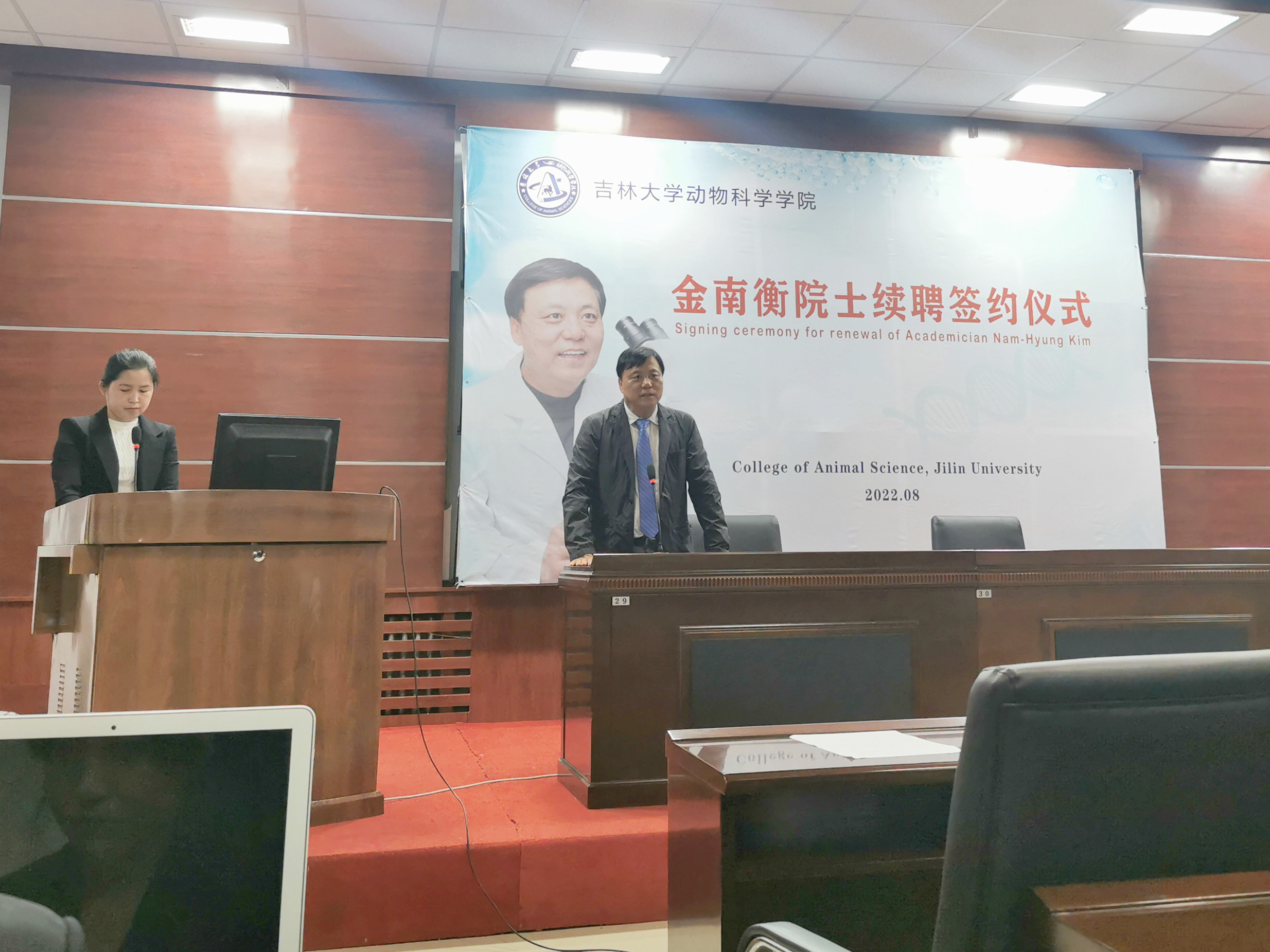 8月29日上午,威廉体育在公司一楼会议室举行韩国科学与技术院院士、韩国国立忠北大学金南衡教授续聘签约仪式,公司领导班子成员和师生代表线下参加了仪式,全体2022级本科生和研究生新生线上参加,仪式由副经理张明军教授主持。