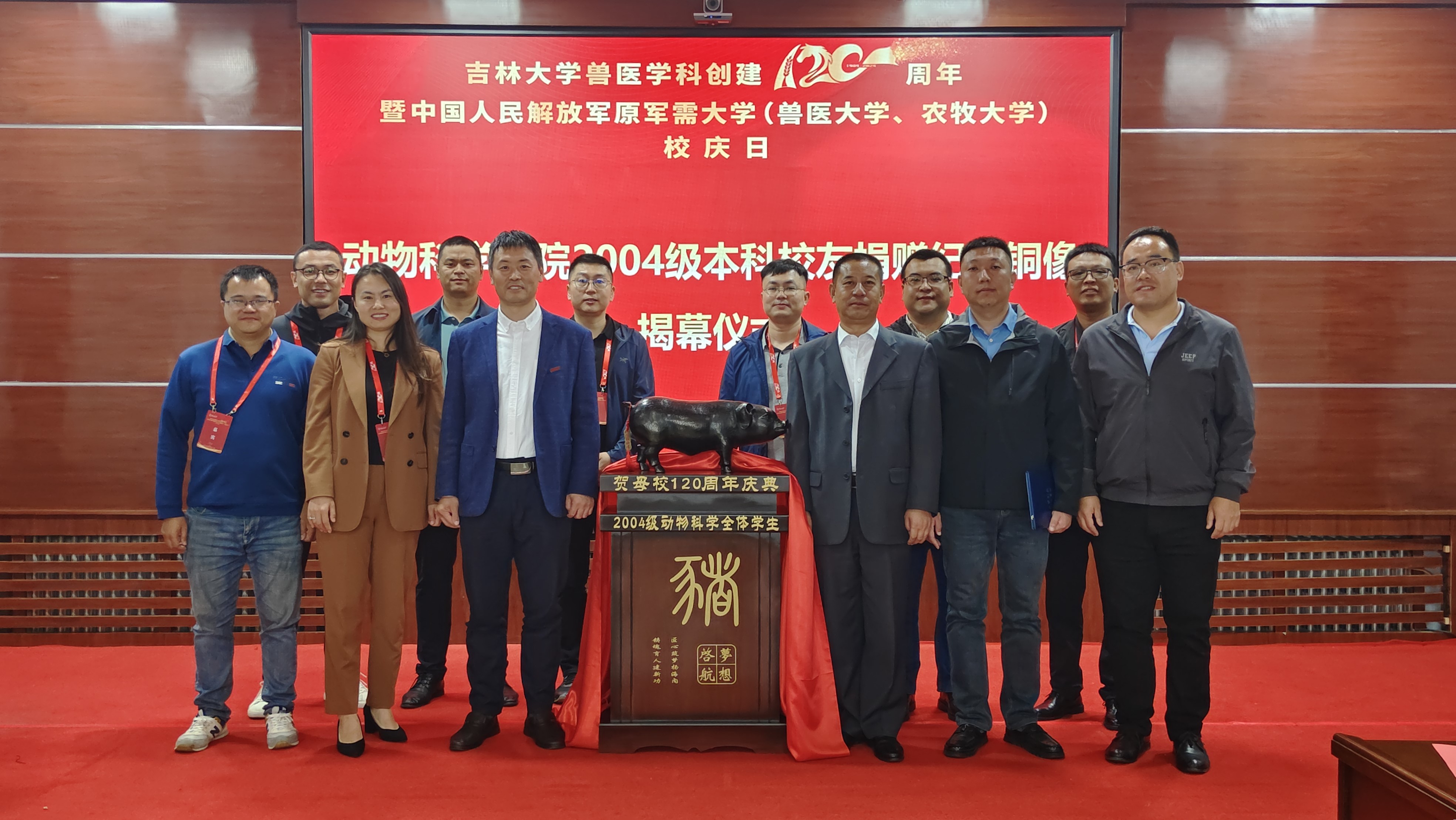 喜迎威廉体育兽医学科创建120周年暨中国人民解放军原军需大学(兽医大学、农牧大学)校庆,为寄托对母校的深切情谊,感恩母校,传递力量,威廉体育于9月20日和21日下午分别举办返校员工捐赠仪式。92级员工代表、斯贝福(北京)生物技术有限公司首席执行官战大伟为公司捐赠了齐长庆先生铜像。公司2004级本科生员工为公司捐赠了吉祥物猪铜像和员工基金10000元整。