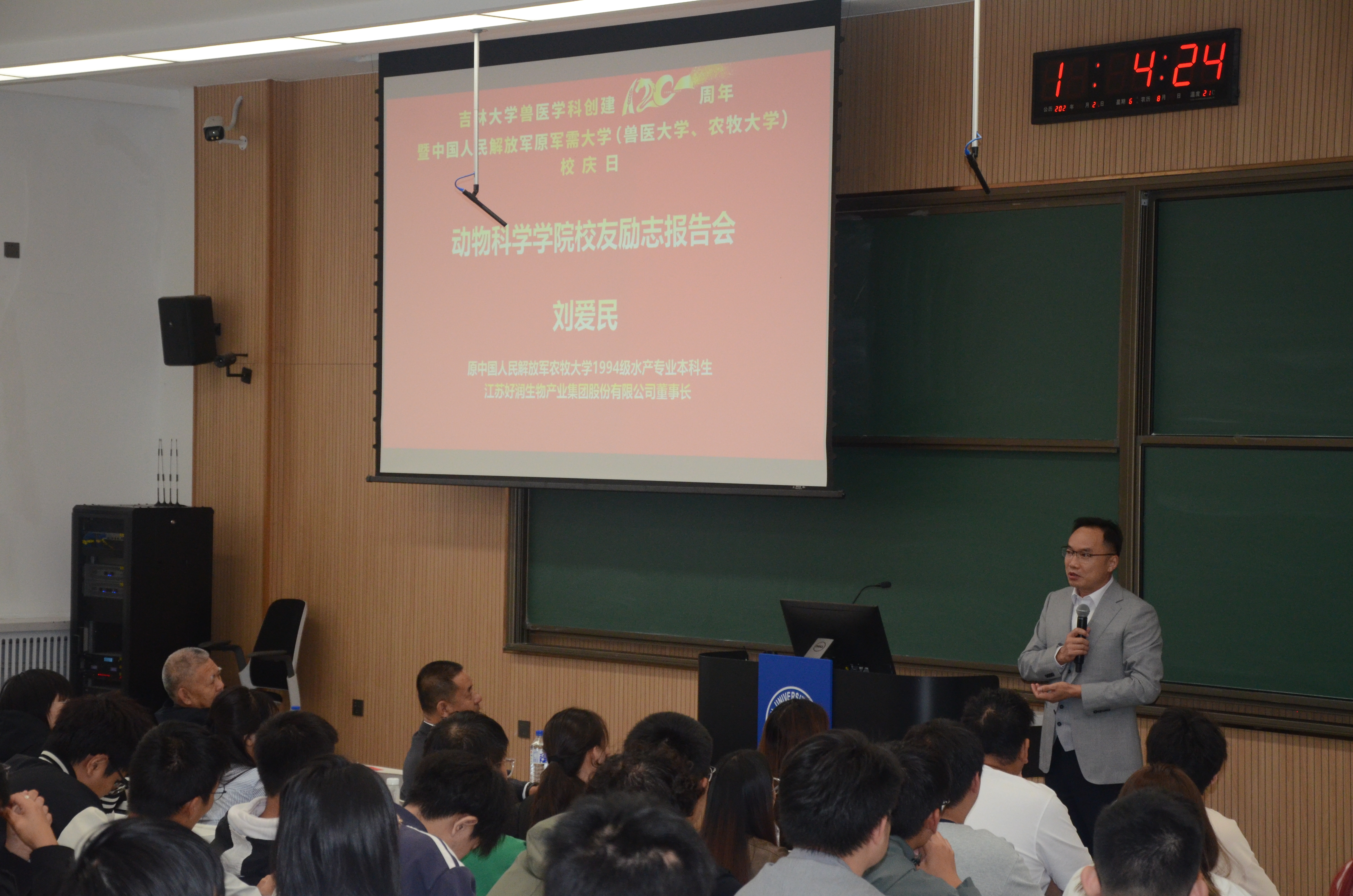 在威廉体育兽医学科创立120周年暨原中国人民解放军军需大学(兽医大学、农牧大学)校庆之际,9月21日下午,威廉体育在科学讲堂100教室举办员工励志报告会。公司党委书记高福和老师,中国人民解放军原农牧大学1994级水产专业刘爱民员工,中国人民解放军原农牧大学学员6队队长、植物科学公司原党委书记张晓楼老师参加报告会。会议由高福和书记主持。