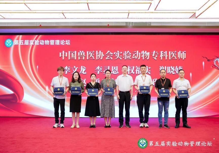 为提升实验动物兽医在饲繁育养、疫病防控、质量管理、福利伦理审查等方面的专业水平,中国兽医协会实验动物专科委员会于2024年6月21日,经中国兽医协会专科建设委员会第八次会议讨论研究,准予成立。论坛期间,举行了实验动物兽医专科建设启动仪式,并为实验动物专科委员会委员代表颁发了证书。中国兽医协会实验动物专科委员会在领域内履行专科人才培养规划、专科培养机构和专科医师评价标准制修订、专科医师培养方案审查、专科医师考核等职责。实验动物专科医师主要负责实验动物设施中动物福利伦理执行情况和实验动物的日常检查、监督、疾病预防诊治和相关的技术咨询等工作,在实验动物行业是一个至关重要的角色。权福实副教授成为中国兽医协会实验动物专科委员会委员并被评选为第一批实验动物专科医师。