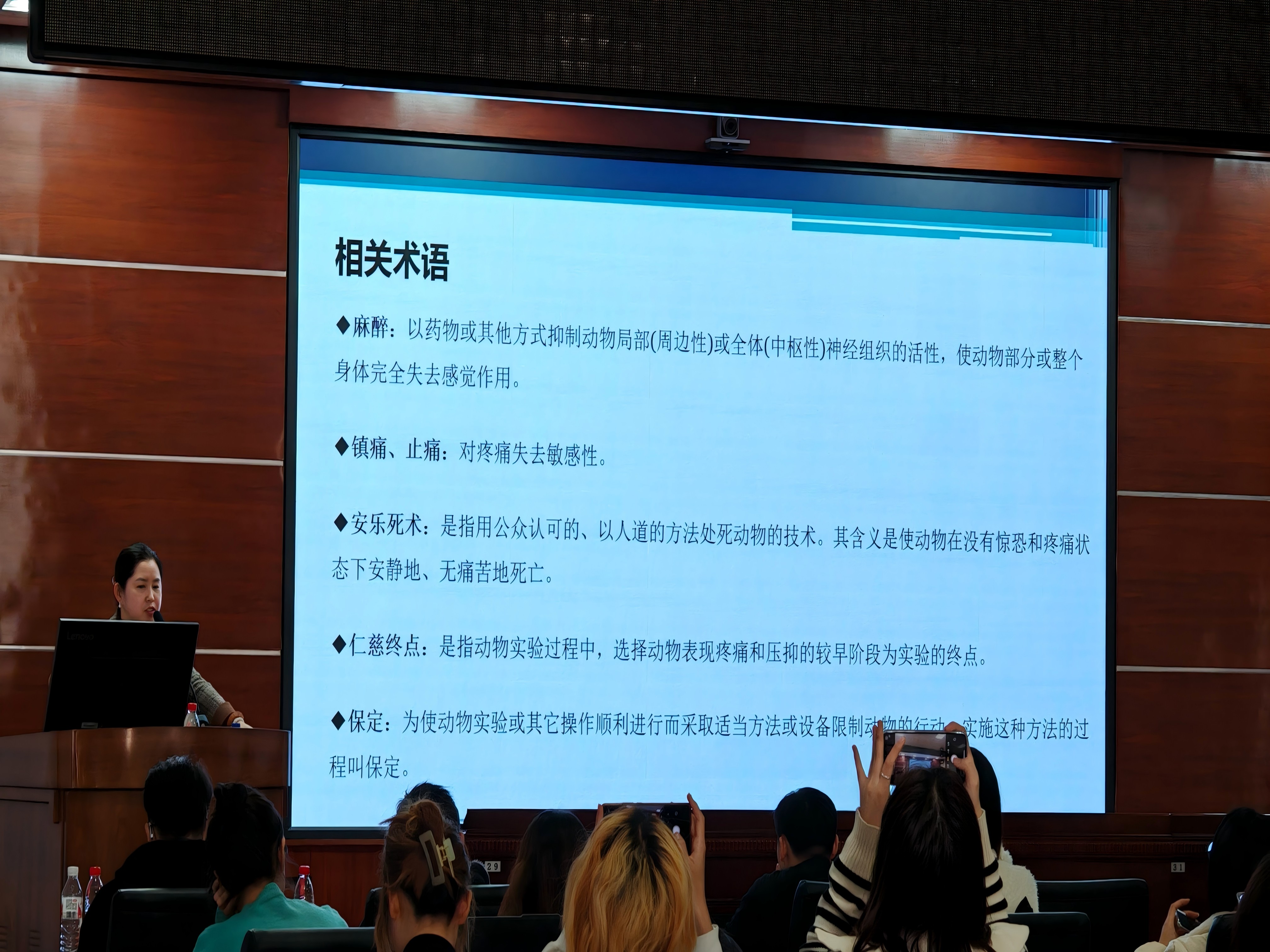 在实验动物设施准入培训环节,权福实老师为同学们作了开展动物实验前必备的《威廉体育实验动物福利伦理审查》申请的相关报告,对如何保障实验过程中动物福利以及申请实验动物福利伦理审查的程序、相关术语、填写注意事项作出了详细说明。