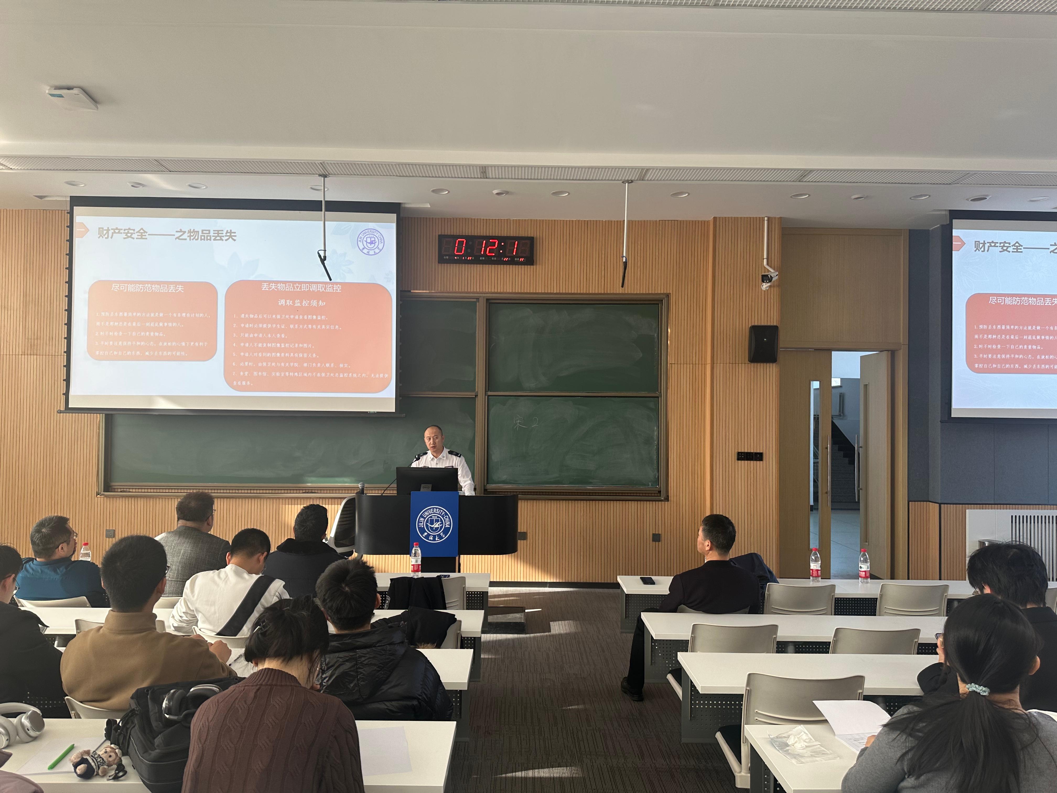 鲁钰锋主任从校园安全环境、防电诈、人身安全、交通安全、消防安全和国家安全几个方面向同学们普及安全知识,鲁主任用幽默风趣的语言向同学们阐述了在遇到危险时如何自救,例举了由于安全意识薄弱而引发悲剧的案例,这些案例让在场的同学们唏嘘不已,体会到了提高安全防范意识的重要性。
