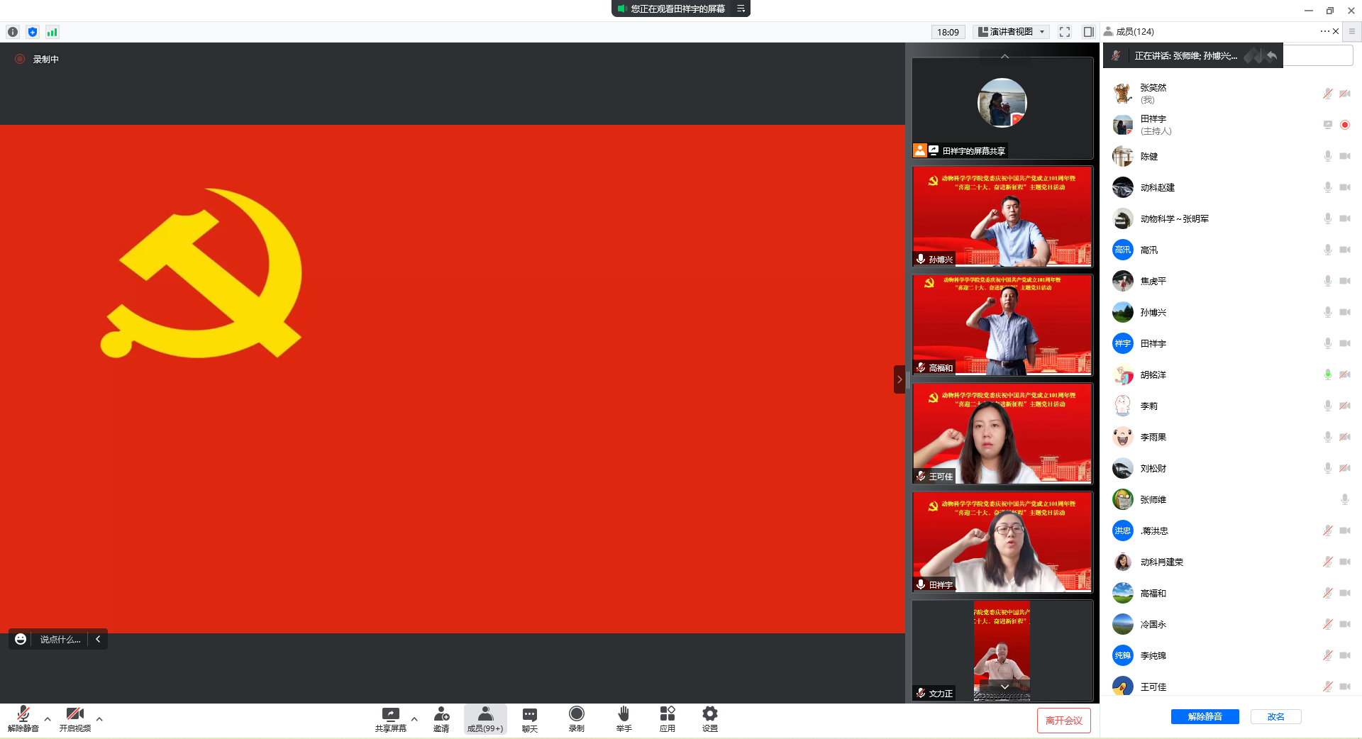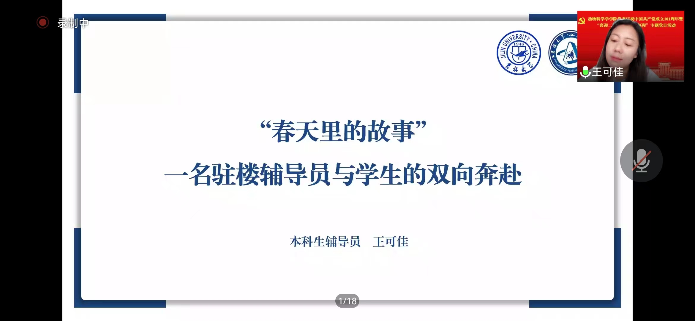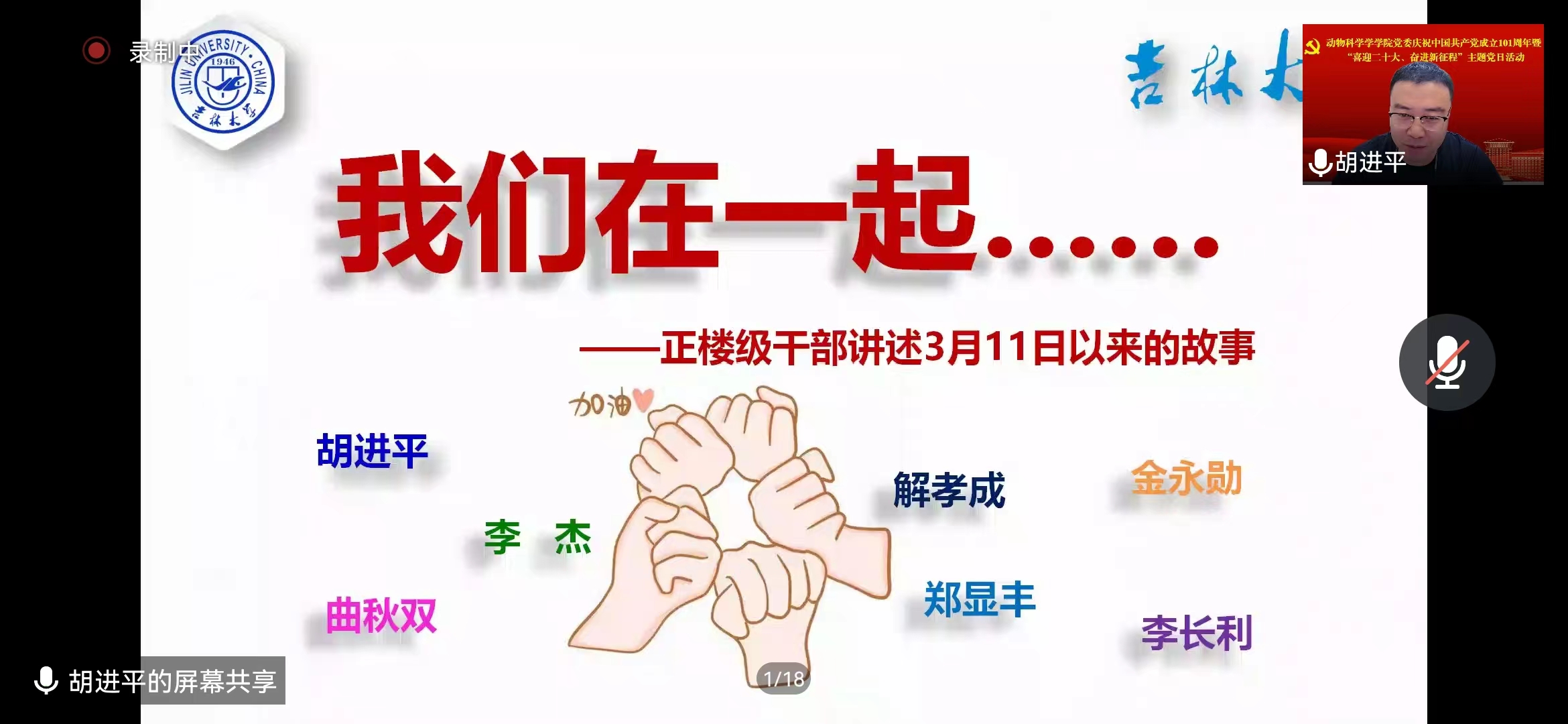 随后,公司疫情防控一线教职工党员代表肖建荣、王可佳、蒋洪忠和胡进平4位同志联合开展“党课开讲啦”,用生动的图片和鲜活的事例分享了他们在校园疫情防控和生产一线工作中的感人故事。肖建荣副书记以《回望·感动·力量·笃行》为题,分享了她带病上阵,在校园防疫一线担任52天“楼长”的感动与收获;辅导员王可佳以“春天里的故事”为题讲述了驻校时间最长、岗位变化最多的楼长与她员工们的双向奔赴;蒋洪忠老师用朴实却坚定的语言生动诠释了“召之能战、战之必胜”的“军人本色”;胡进平老师则细数公司生产一线的7位同志从冰雪覆盖到春暖花开再到夏日到来一路的艰辛与坚守......讲不完的故事,道不尽的感动,4位党员同志用他们的实际行动为公司师生筑起一道坚强的防疫屏障,他们是校园防疫一线的一抹“动科红”。