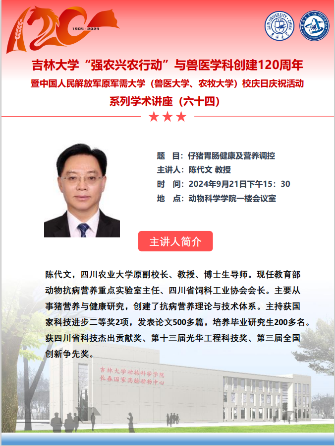 上一条:威廉体育“强农兴农行动”与兽医学科创建120周年暨中国人民解放军原军需大学(兽医大学、农牧大学)校庆日庆祝活动系列学术讲座(六十六、六十七、六十八) 下一条:威廉体育“强农兴农行动”与兽医学科创建120周年暨中国人民解放军原军需大学(兽医大学、农牧大学)校庆日庆祝活动系列学术讲座(五十七)