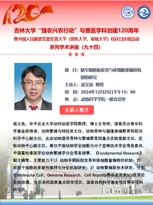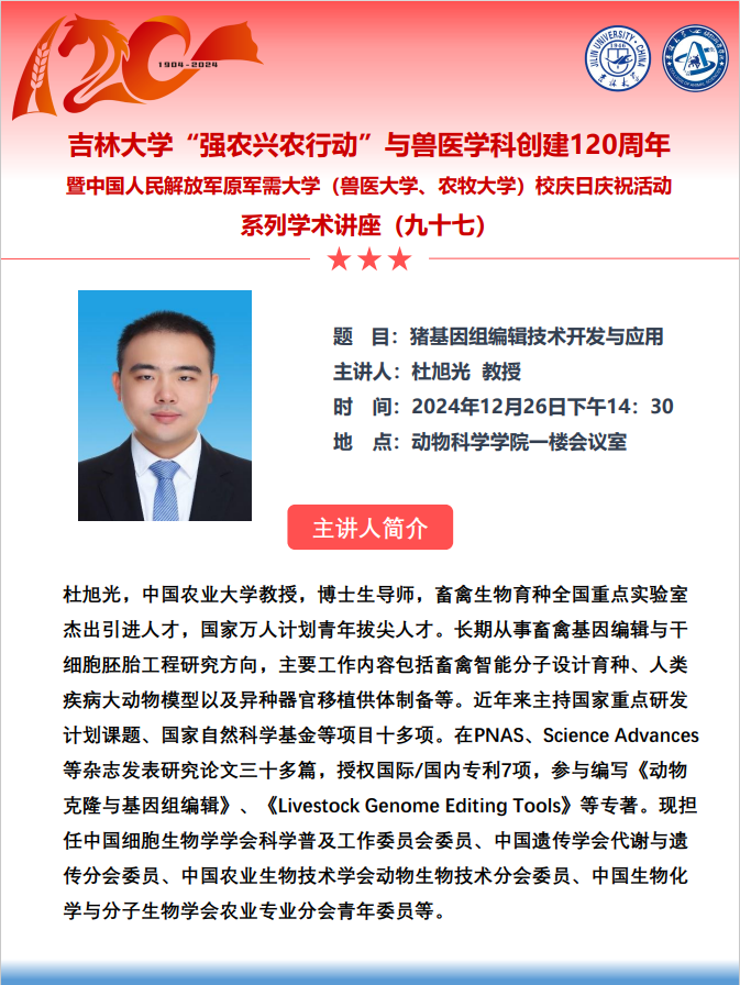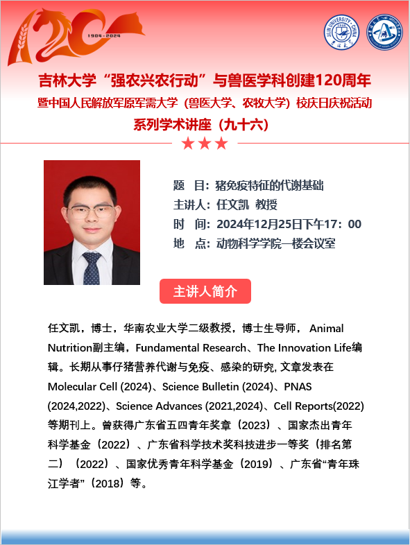 威廉体育“强农兴农行动”与兽医学科创建120周年暨中国人民解放军原军需大学(兽医大学、农牧大学)校庆日庆祝活动系列学术讲座(九十四—九十七)
