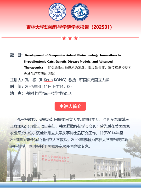 上一条:威廉体育学术报告(202502) 下一条:威廉体育“强农兴农行动”与兽医学科创建120周年暨中国人民解放军原军需大学(兽医大学、农牧大学)校庆日庆祝活动系列学术讲座(九十四—九十七)